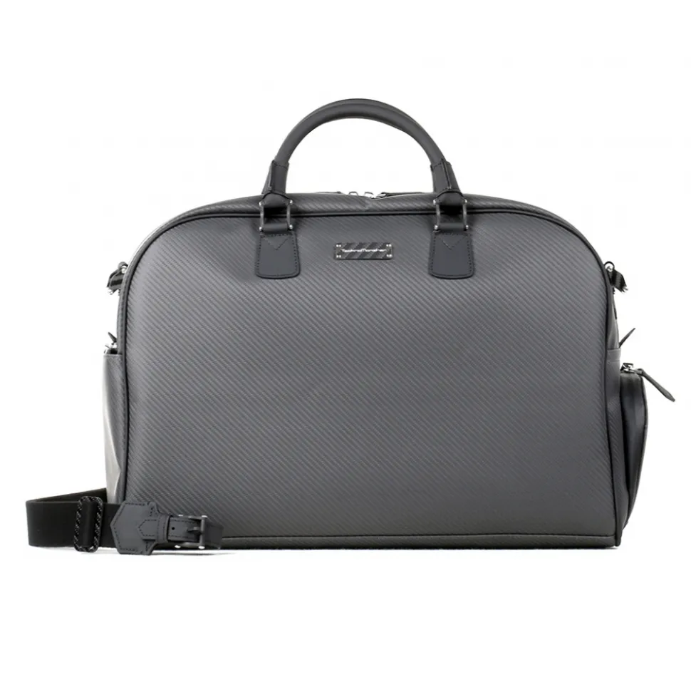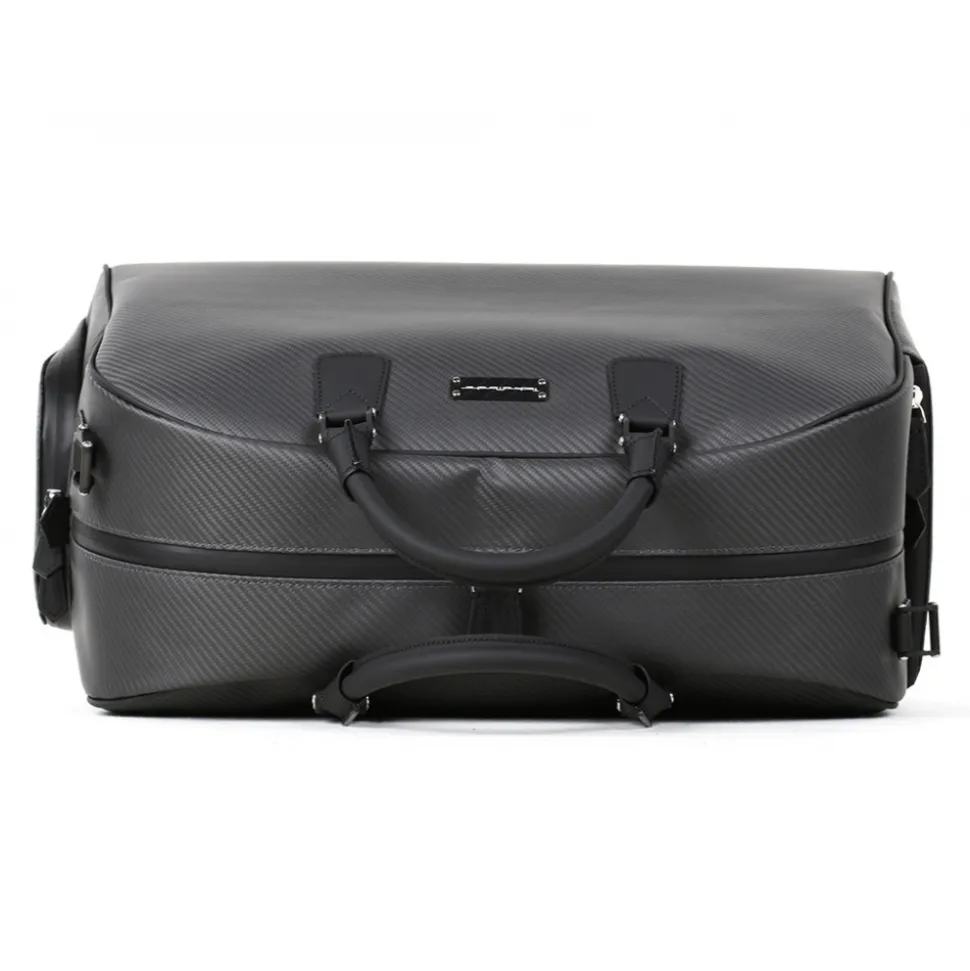 Exclusive business bag in pure aeronautical carbon fiber and leather. Handcrafted in Italy, the Black Carpet special edition is created using the same materials used in Lamborghini super sports cars, pure aeronautical carbon and high quality leather. Black.