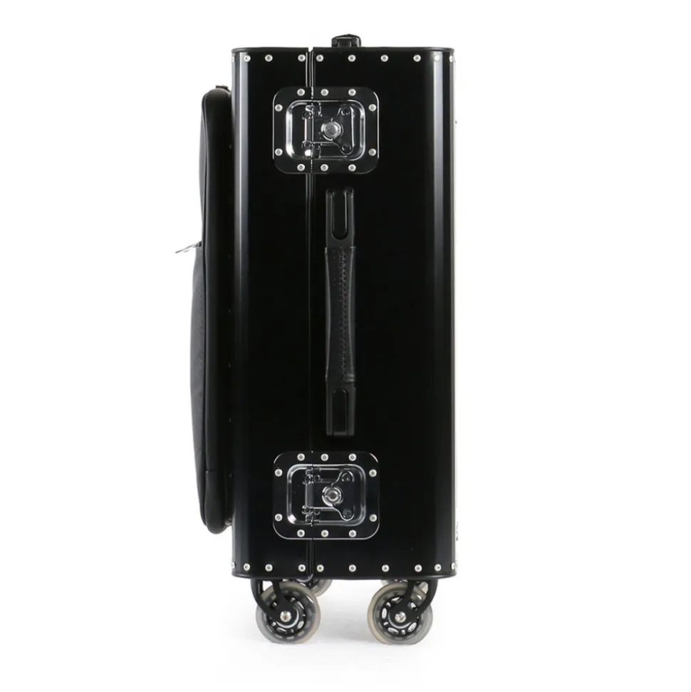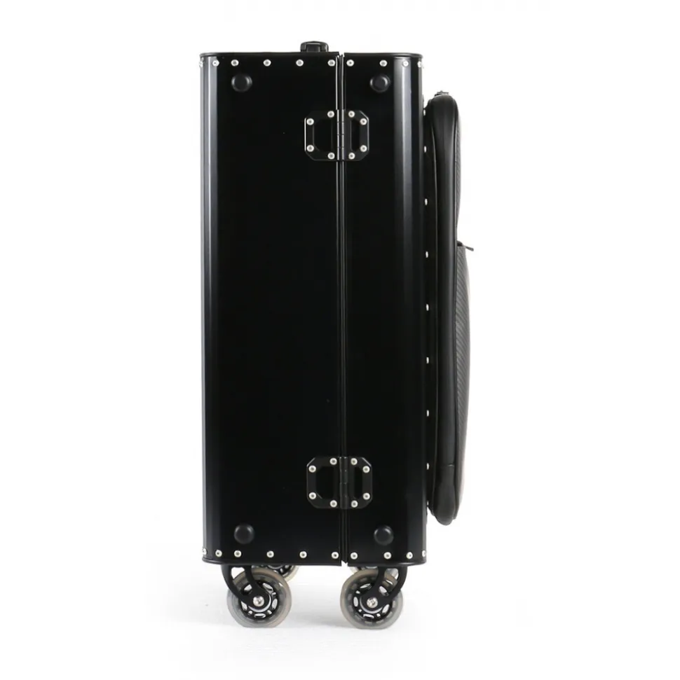Titanium trolley with aeronautic riveting and interlocking side locks. Aluminium details.