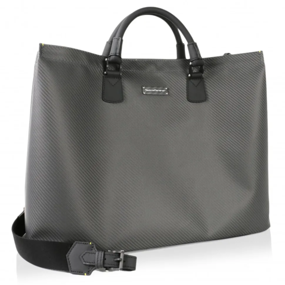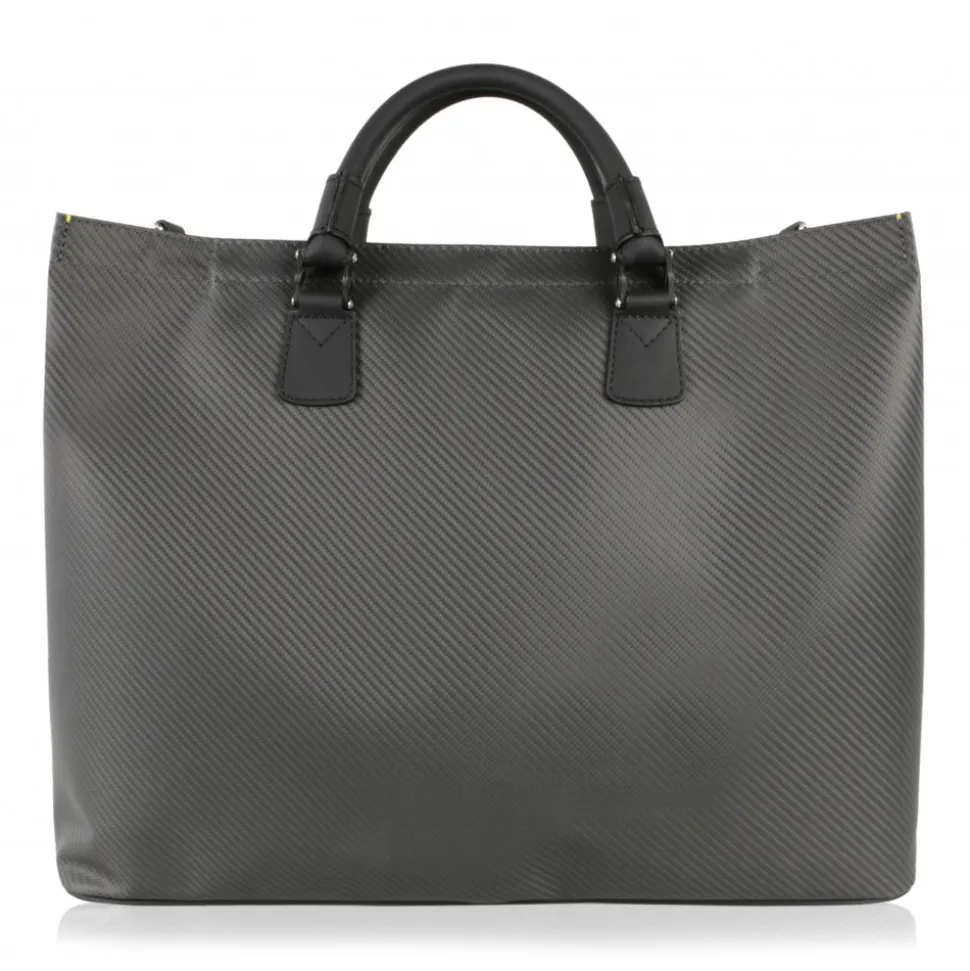 Ultralight Tote Bag in Carbon Fibre Nix with hand made handles and leather details. All HiTeck sockets are in Carbon Fibre Glacies.