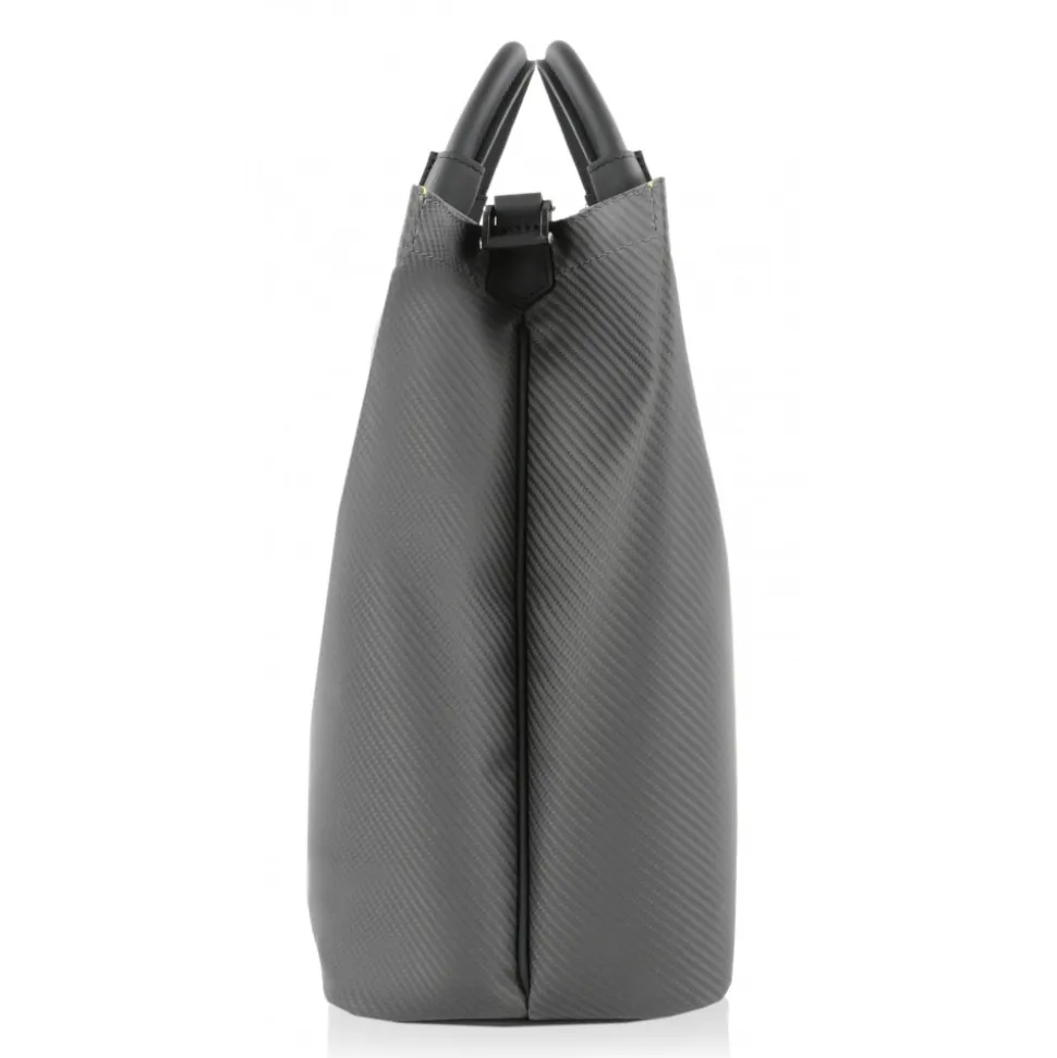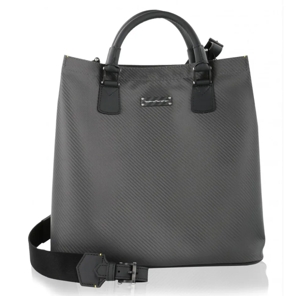 Ultralight Tote Bag in Carbon Fibre Nix with hand made handles and leather details. All HiTeck sockets are in Carbon Fibre Glacies.