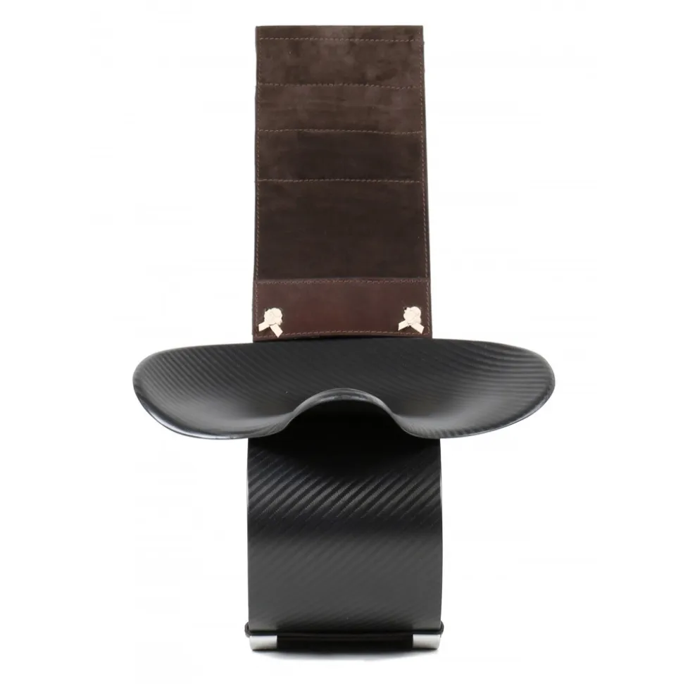 Mini seat in Carbon Fibre Opal Glacies with suede leather finishings in dark brown colour and natural leather hand made knots.