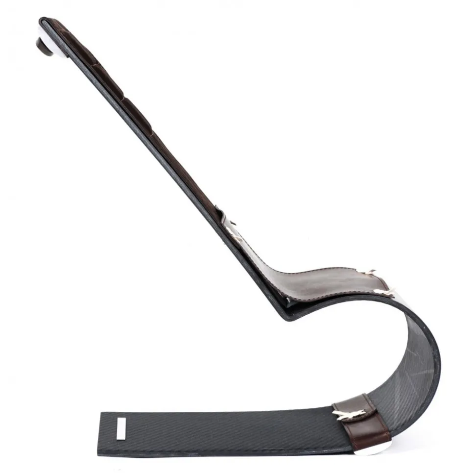 Mini seat in Carbon Fibre Opal Glacies with suede leather finishings in dark brown colour and natural leather hand made knots.