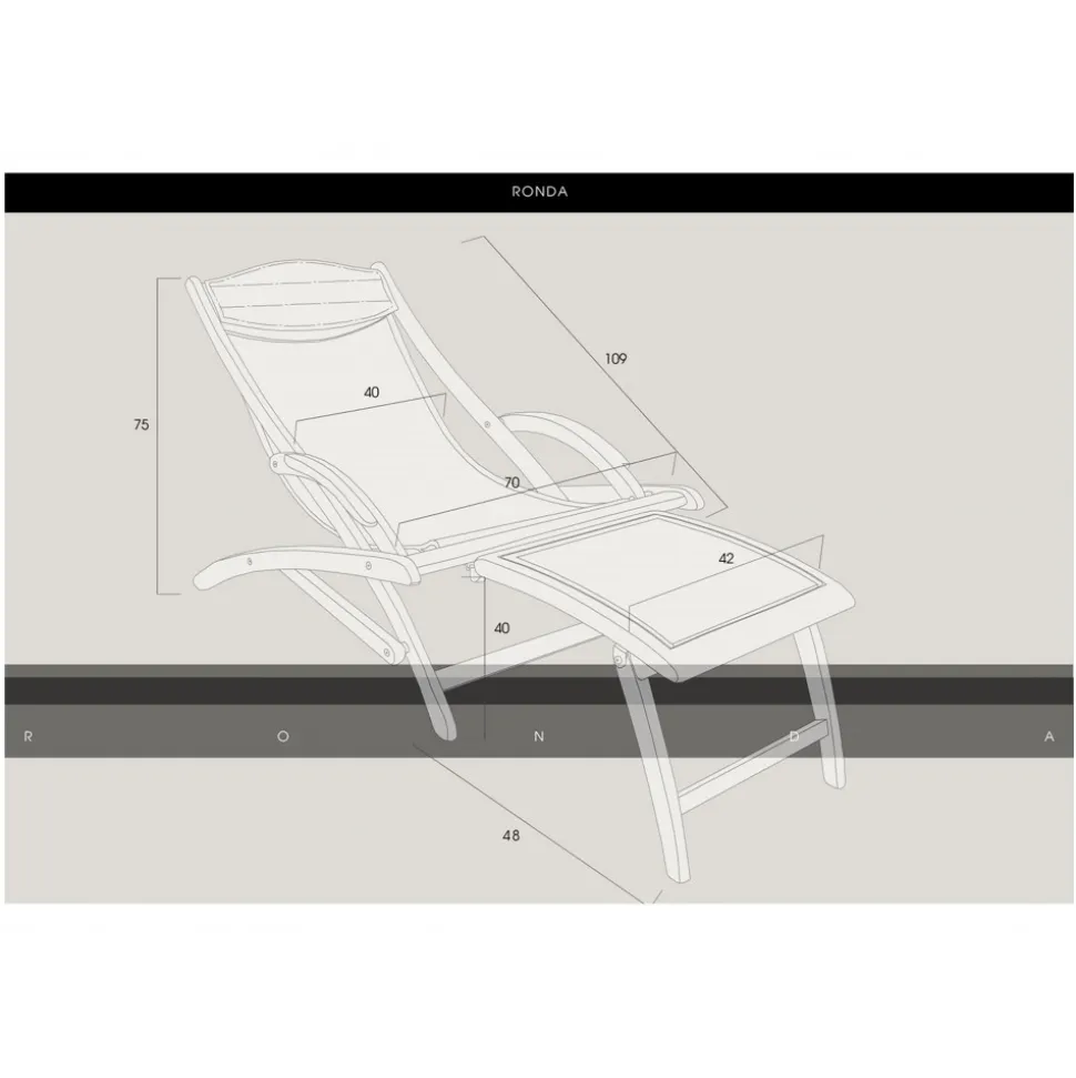 Sunbed Chair with removable footrest. Wood frame, aluminium mechanism and sockets, Carbon Fibre Nix chair with finishings and dark brown leather pillow.