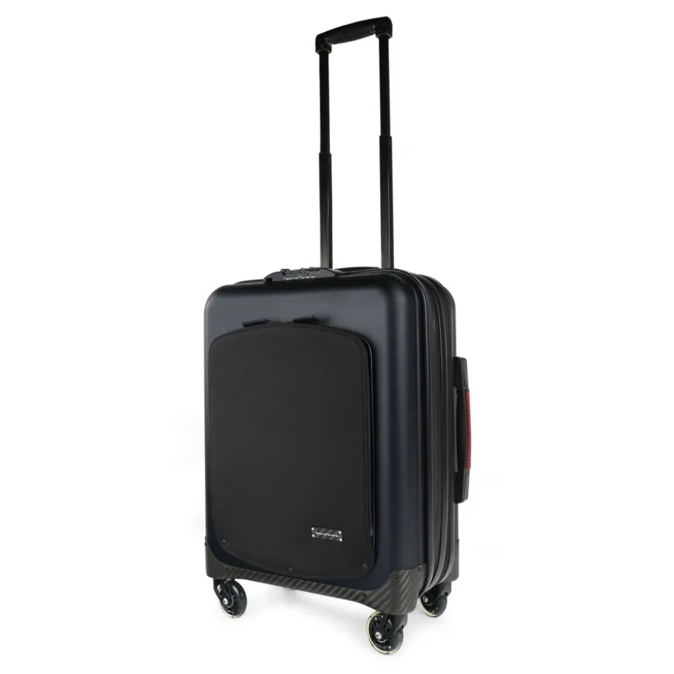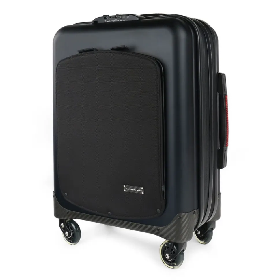 TecknoMonster –Â Trolley Akille Flap Black in Carbon Fiber – Aeronautical Carbon Trolley Suitcase