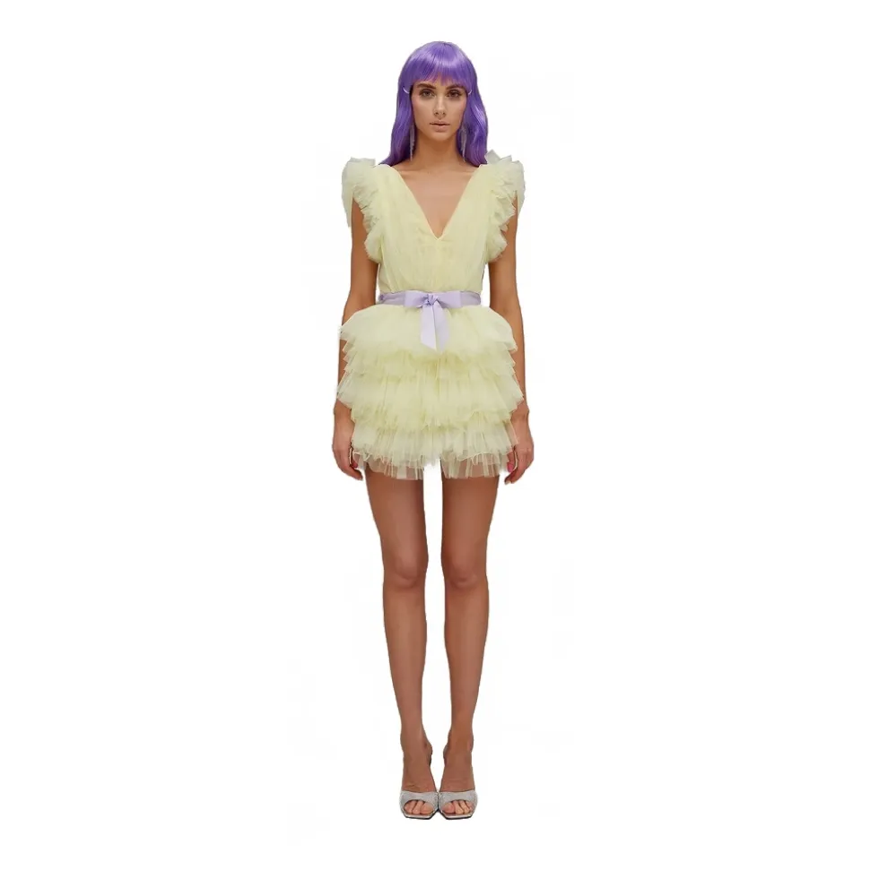 Teen Idol – Orione Tulle Mini Dress with Shoulders – Yellow – Dresses – Teen-Ager – Luxury Exclusive Collection
