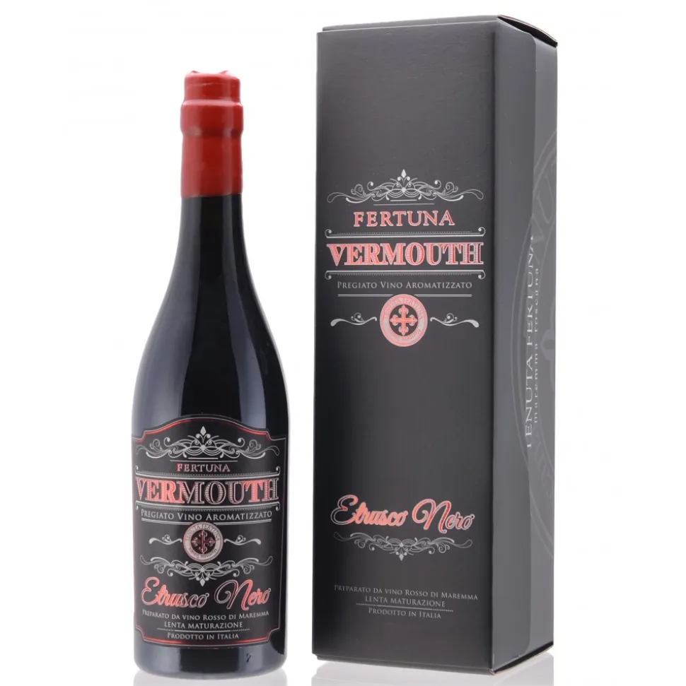 Vermouth Etrusco Nero is produced from blending of fine Fertuna red wine, flavored with natural extracts of herbs and spices originating also in Maremma area.