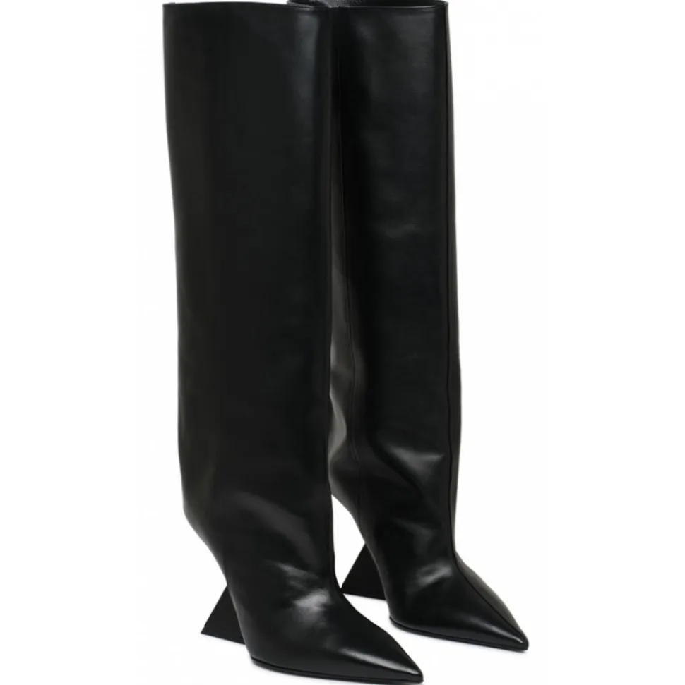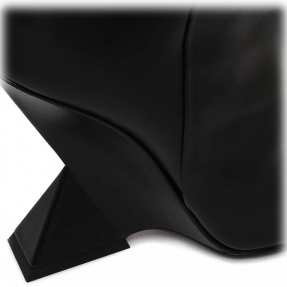 The Attico Cheope Tube Boot. Black calfskin tube boot with 105mm high pyramid wedge.