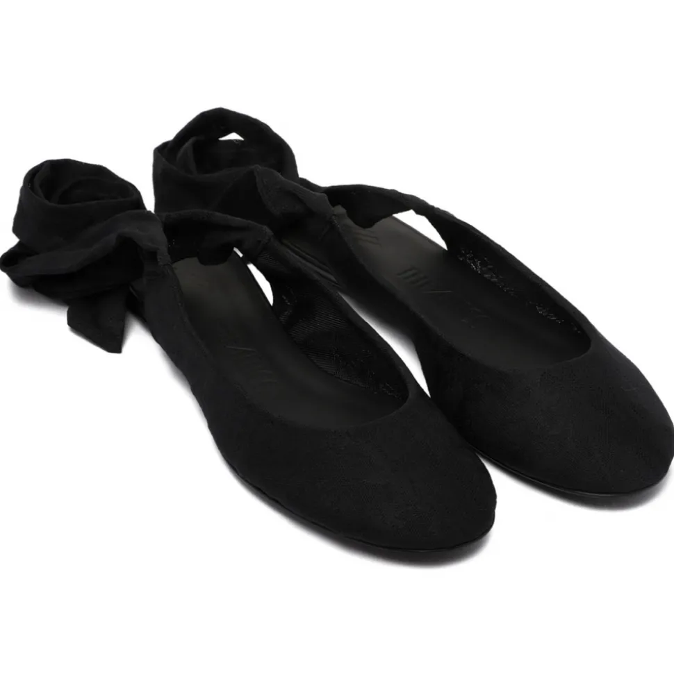The Attico Black Cloe Ballet Flats. Black ballet flats, tie-fastening ankle strap, pattern-lace detailing, almond toe, flat sole.