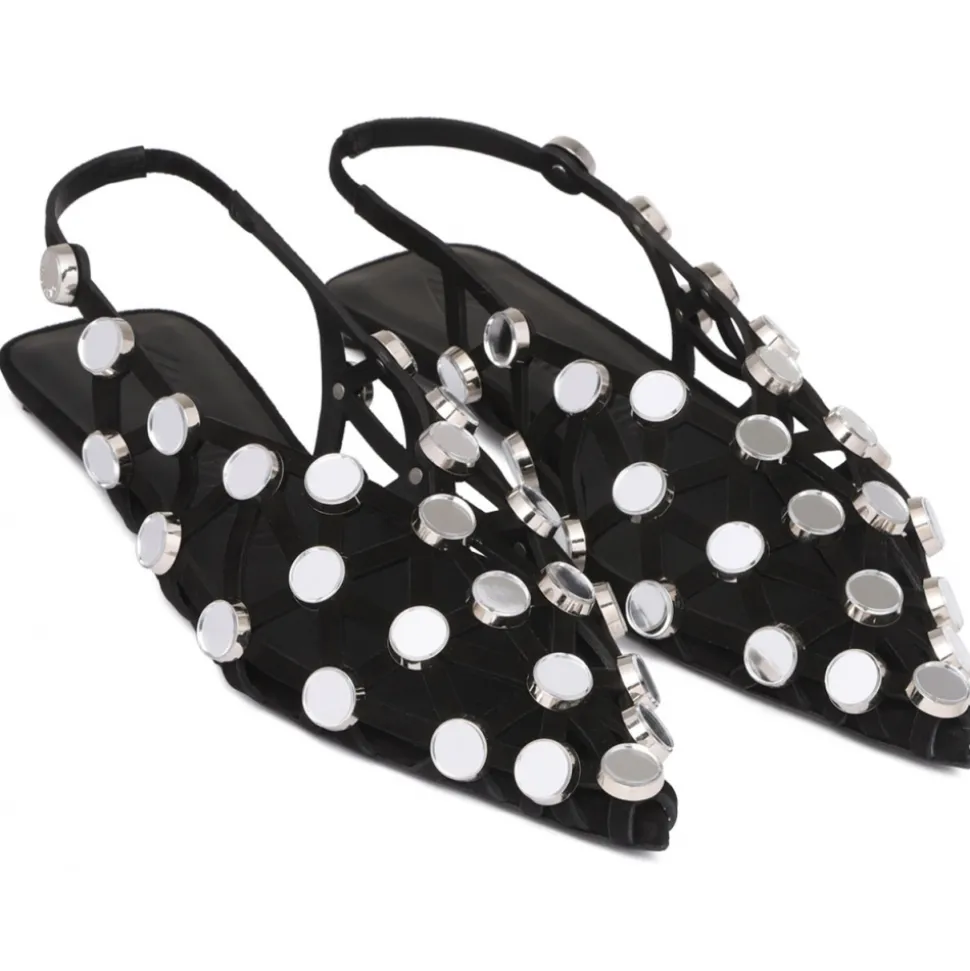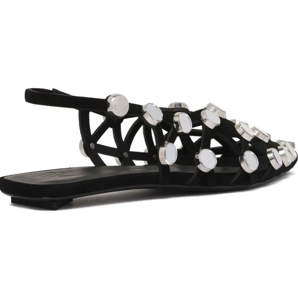 The Attico Black Grid Ballerina Shoes. ”Grid” ballerina in black suede with mirror application, height 05mm.