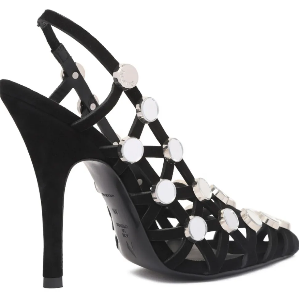 The Attico Black Grid Pumps. Slingback ”Grid” in suede with black workmanship, height 105mm.