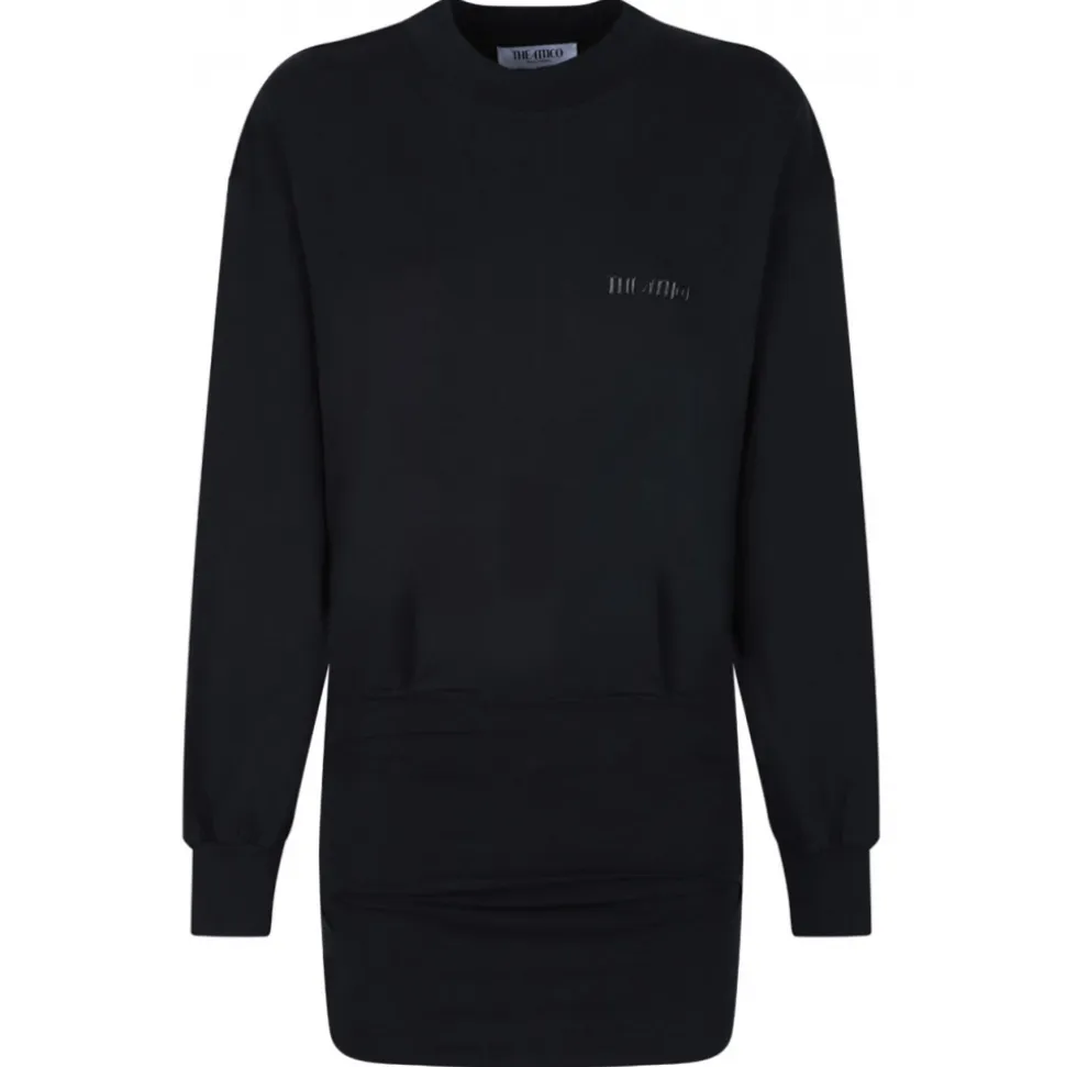 The Attico Black Mini Dress. Black cotton mini dress, slip-on style, crew neck, long sleeves, straight hem.