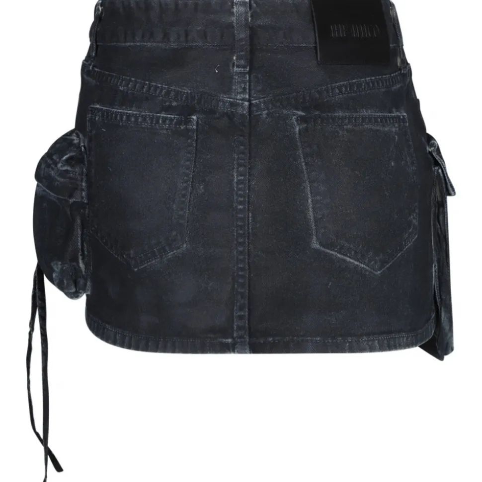 The Attico Fay Mini Skirt. Midnight blue cotton mini skirt, concealed fly and button fastening. Classic five pockets, two front flap pockets, side zip-fastening pocket.