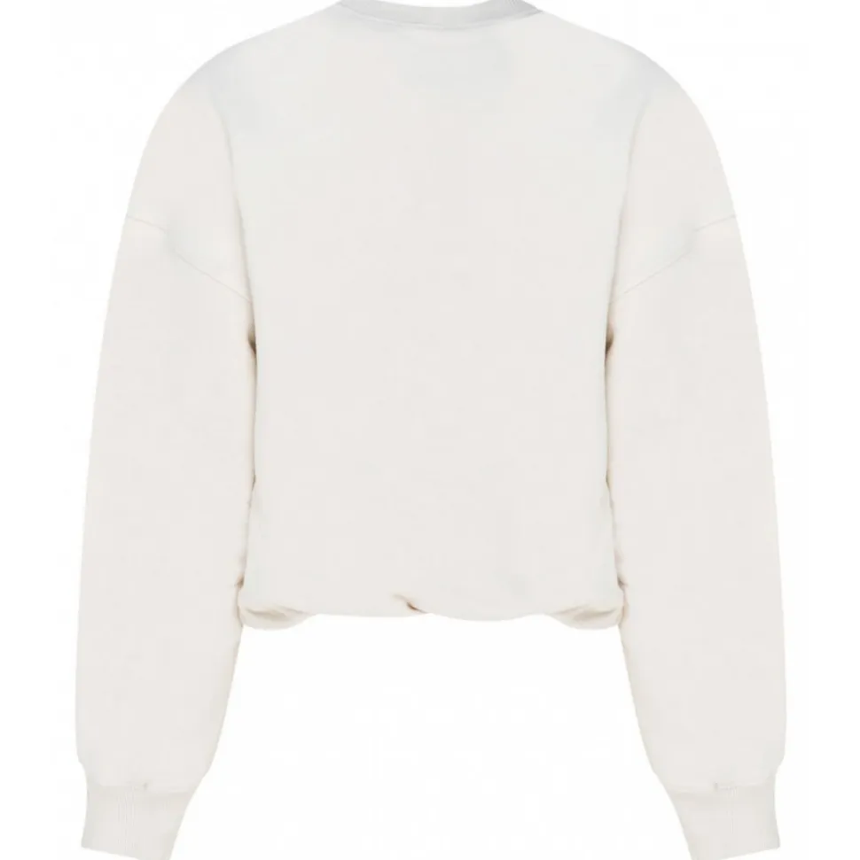 The Attico Ivory Cotton Maeve Logo Embossed Cotton Sweatshirt. Ivory cotton sweatshirt, crew neck, embossed logo to the front, gathered detailing, drop shoulder, long sleeves, ribbed cuffs and hem.
