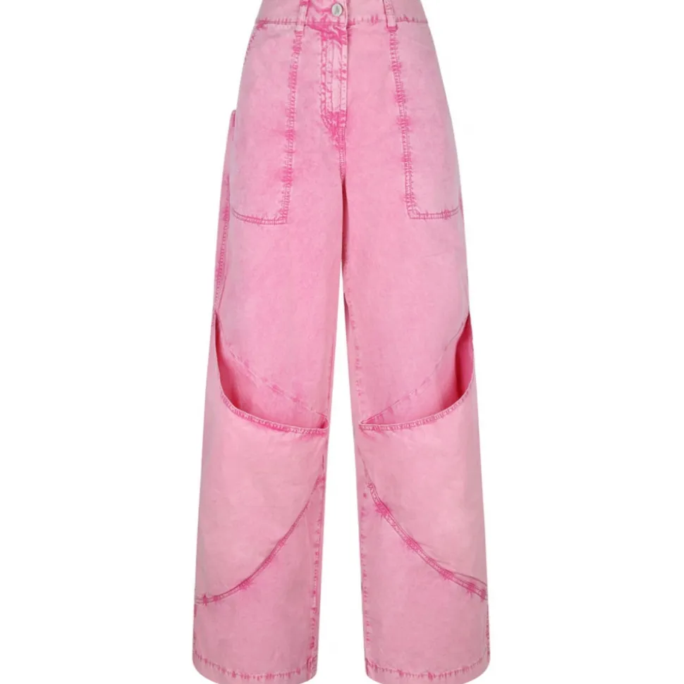 The Attico Pink Wide Leg Trousers. Pink cotton trousers, concealed fly and button fastening. Two side slash pockets, two rear patch pockets, two front pouch pockets.