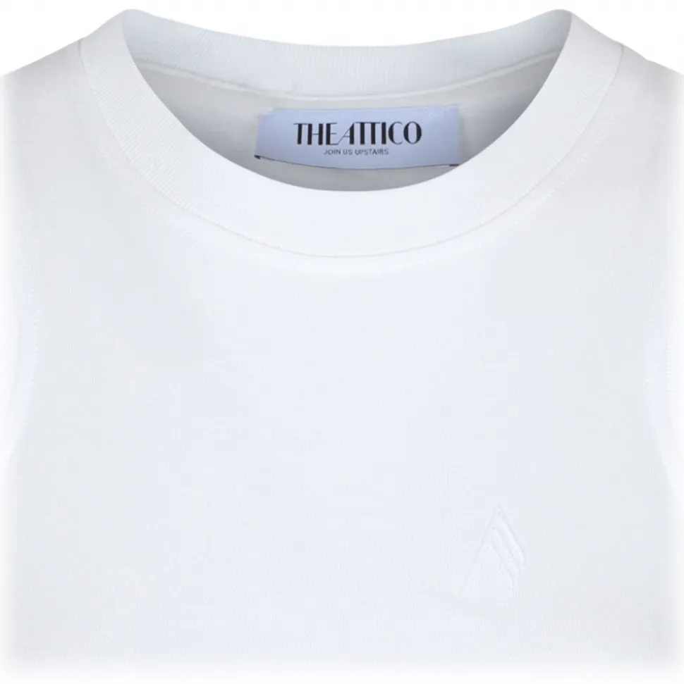 The Attico White Reese Tank Top. White cotton tank top, crew neck, sleeveless, embroidered logo at the chest.