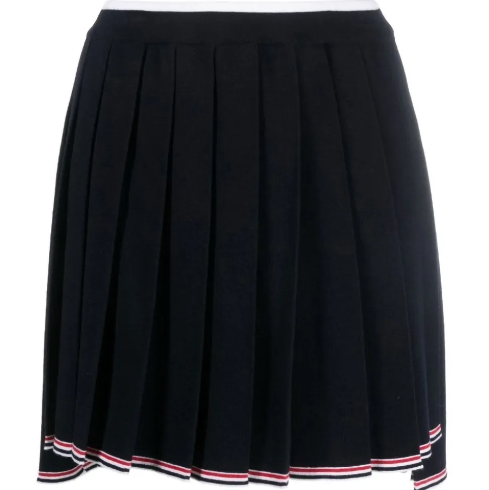 Thom Browne Skirt Woman Full Needle Pleated Mini Skirt in Merino Wool w/ Tipping.