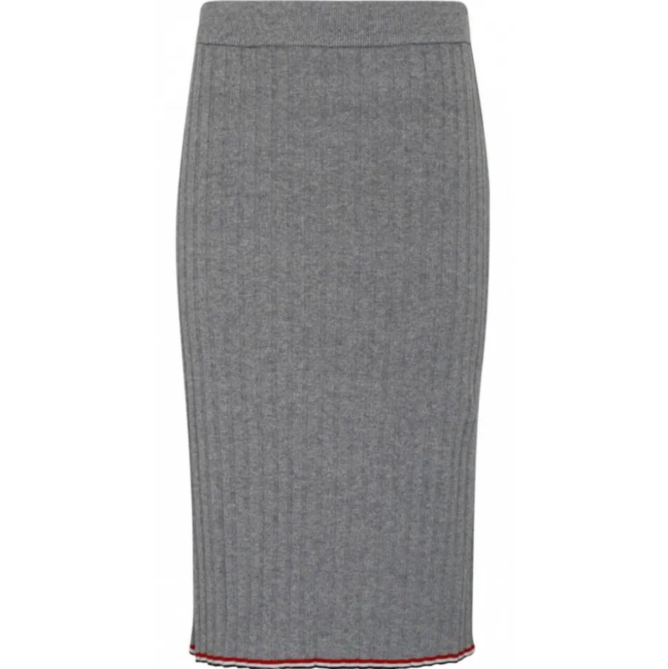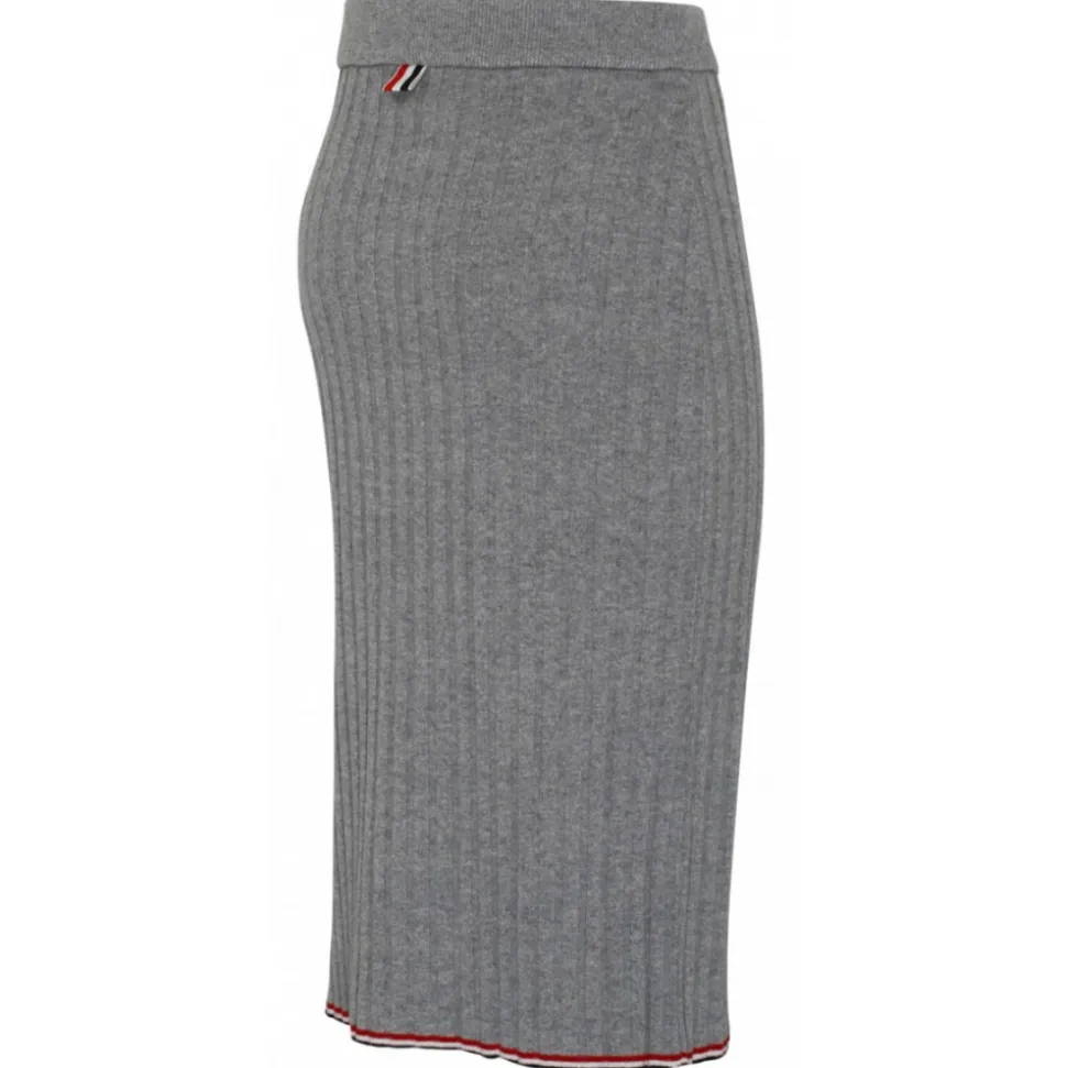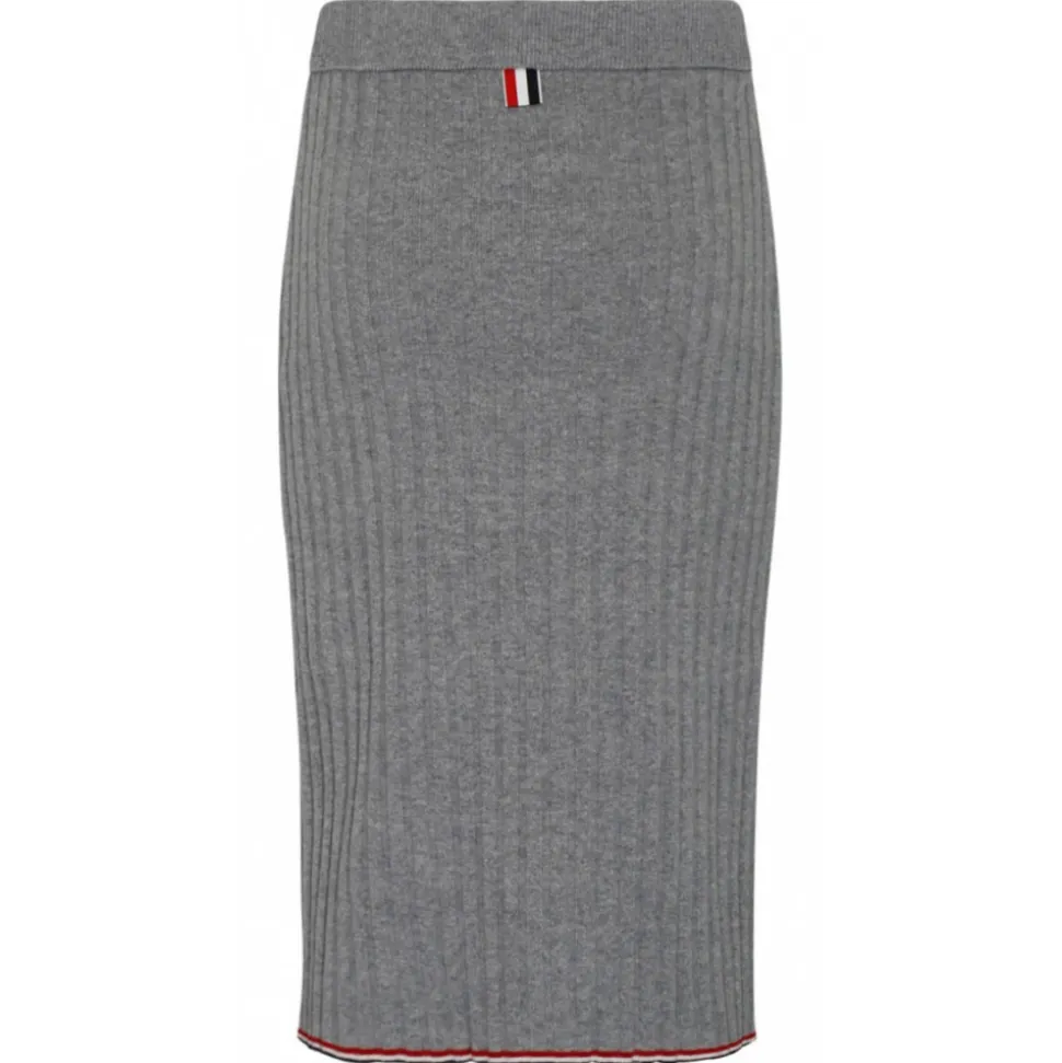 Thom Browne Light Grey Cashmere Pencil Skirt. Light grey cashmere pencil skirt, ribbed knit, knee length, classic finish.