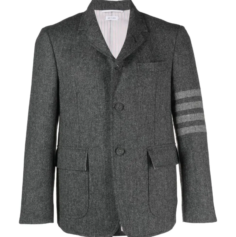 Thom Browne jacket man unstructured straight fit s/c w/sewed in 4bar in solid donegal tweed.