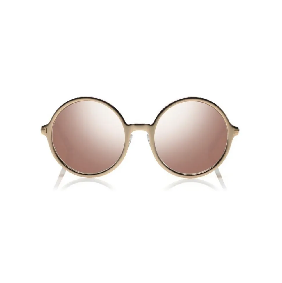Shiny rose gold metal style enriched by the T logo on the temple.