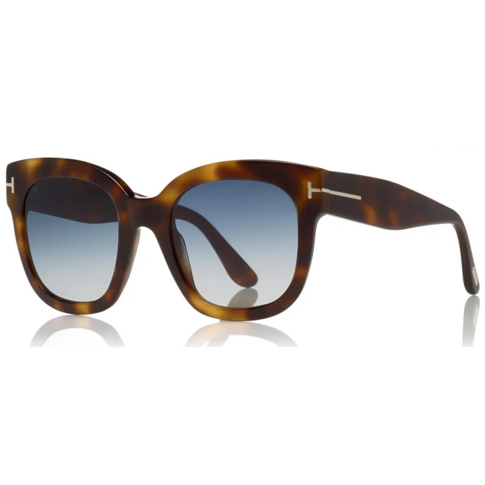 Shiny classic dark Honey acetate style with shiny rose gold T logo decoration with gradient burgundy lenses.