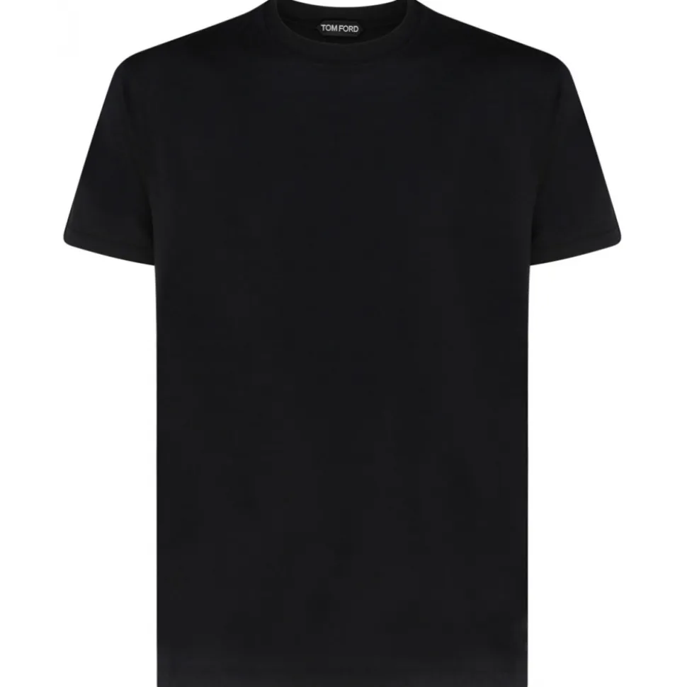 Tom Ford Black Cotton Round Neck Short Sleeve T Shirt. Black cotton t shirt, round neck, short sleeves, cotton-lyocell blend.