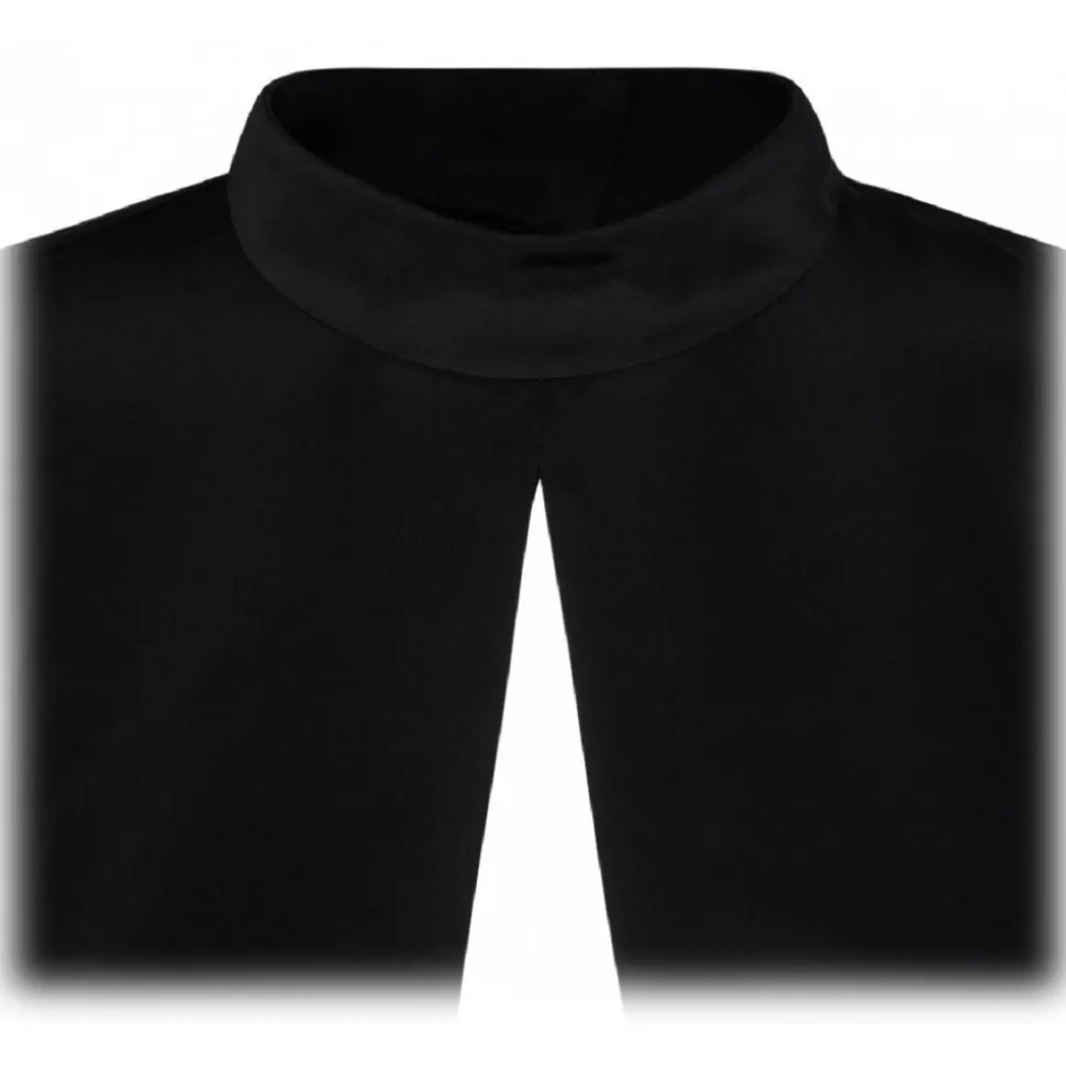 Tom Ford Black Silk Wide Sleeve Bodysuit. Black silk bodysuit, cut out detailing, long wide sleeves. Mock neck, buttoned cuffs.