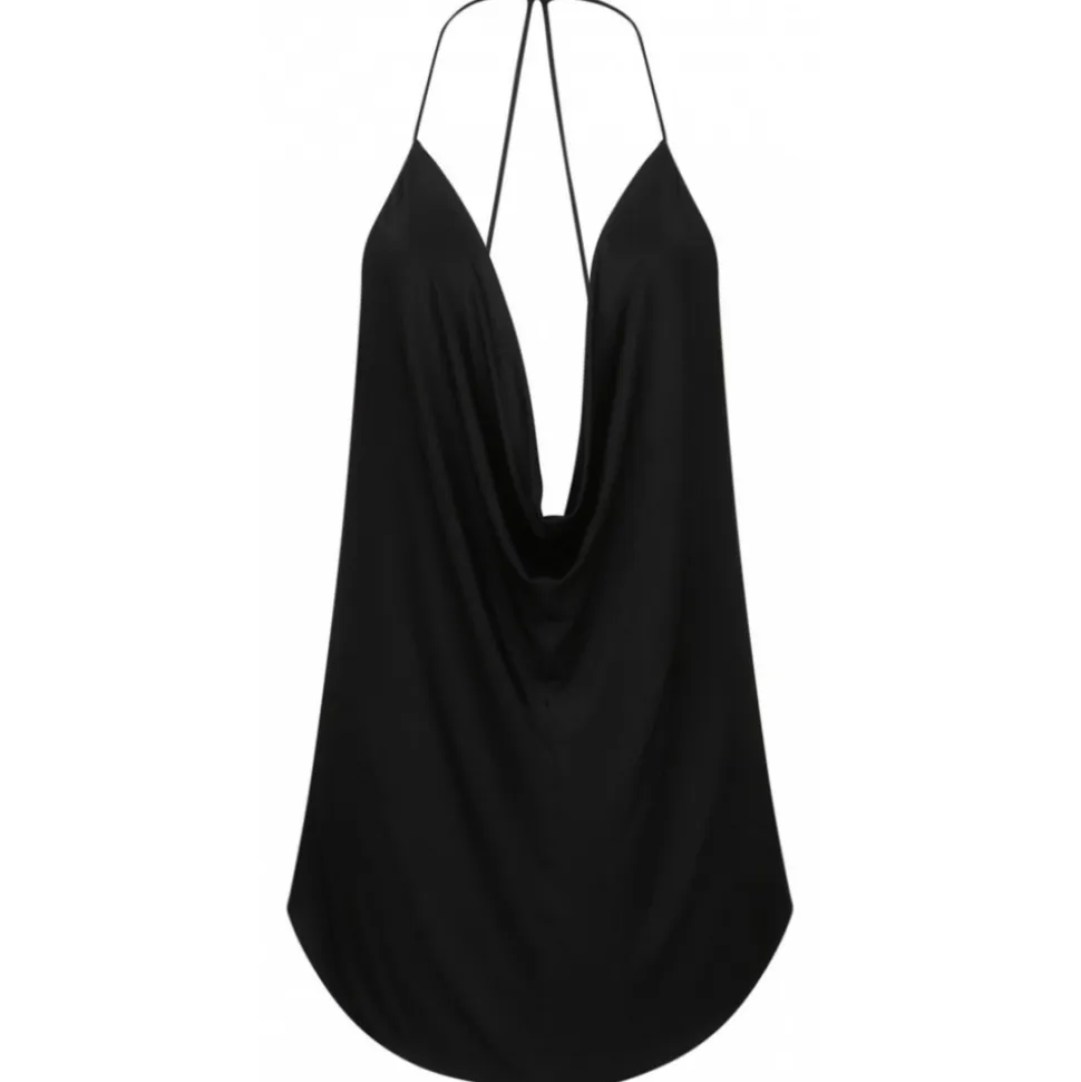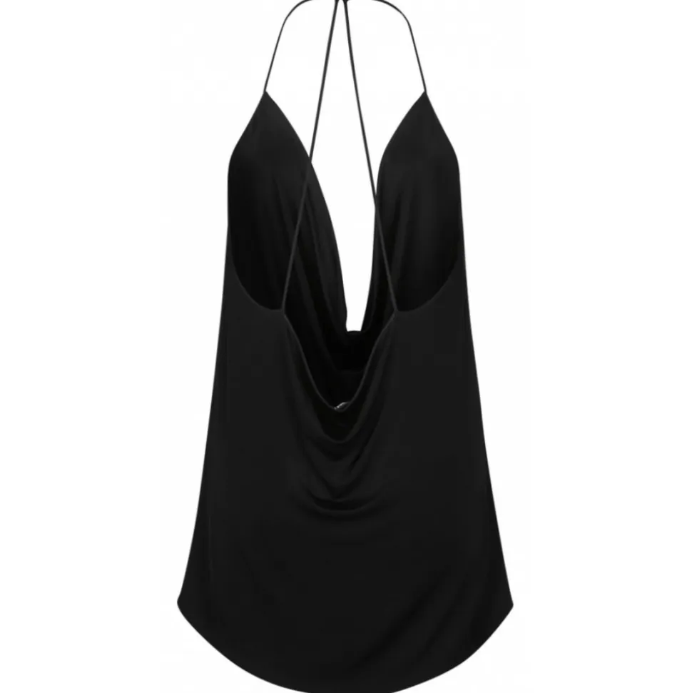Tom Ford Black Tank Top. Black jersey halternenck tank top, cowl collar, spaghetti straps, crafted in fluid knitted viscose stretch jersey.