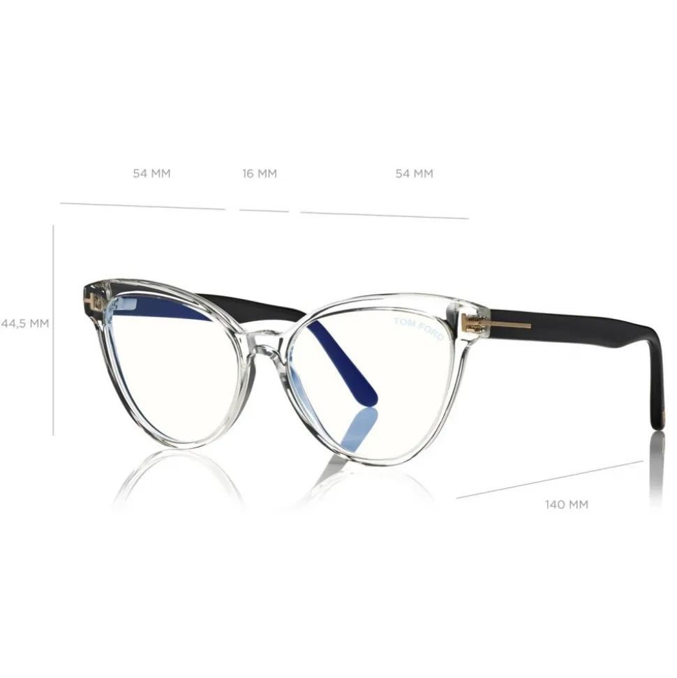 Discover the latest ready-to-wear clear lenses now available in TOM FORD Eyewear. These special lenses intended to prevent and relieve eye strain caused caused by long exposure to blue light from digital devices, increasing visual comfort. Soft cat-eye like acetate style with metal “T” logo decoration.
