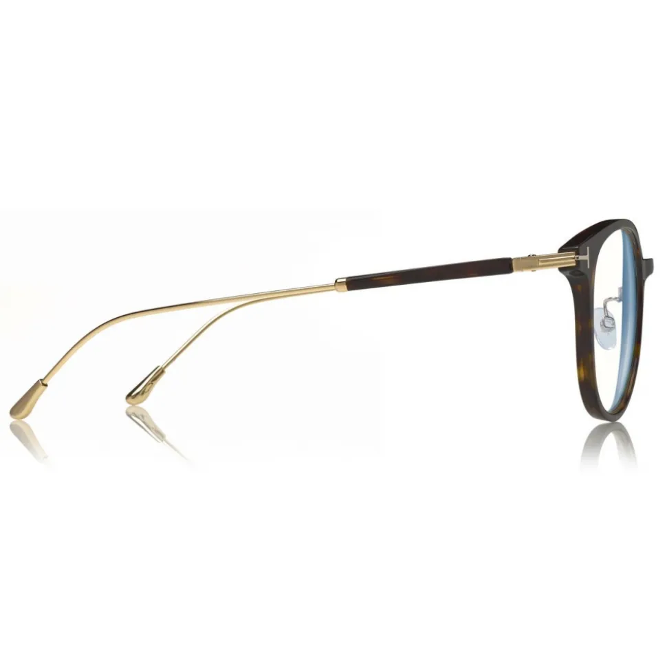 Discover the latest ready-to-wear clear lenses now available in TOM FORD Eyewear. These special lenses intended to prevent and relieve eye strain caused caused by long exposure to blue light from digital devices, increasing visual comfort. Soft rounded style with acetate front and metal temples tips. Metal “T” logo decoration.
