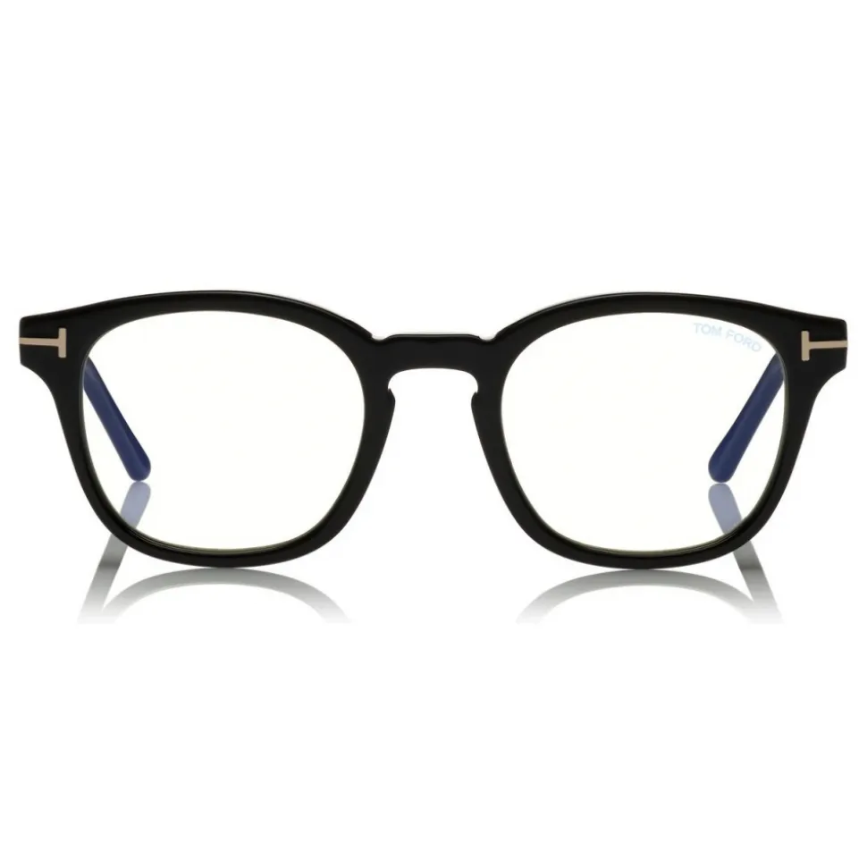 Discover the latest ready-to-wear clear lenses now available in TOM FORD Eyewear. These special lenses intended to prevent and relieve eye strain caused by long exposure to blue light from digital devices, increasing visual comfort. Soft rounded acetate style with metal T temple decoration. The style comes with an exclusive magnetic clip-on in real leather or acetate.