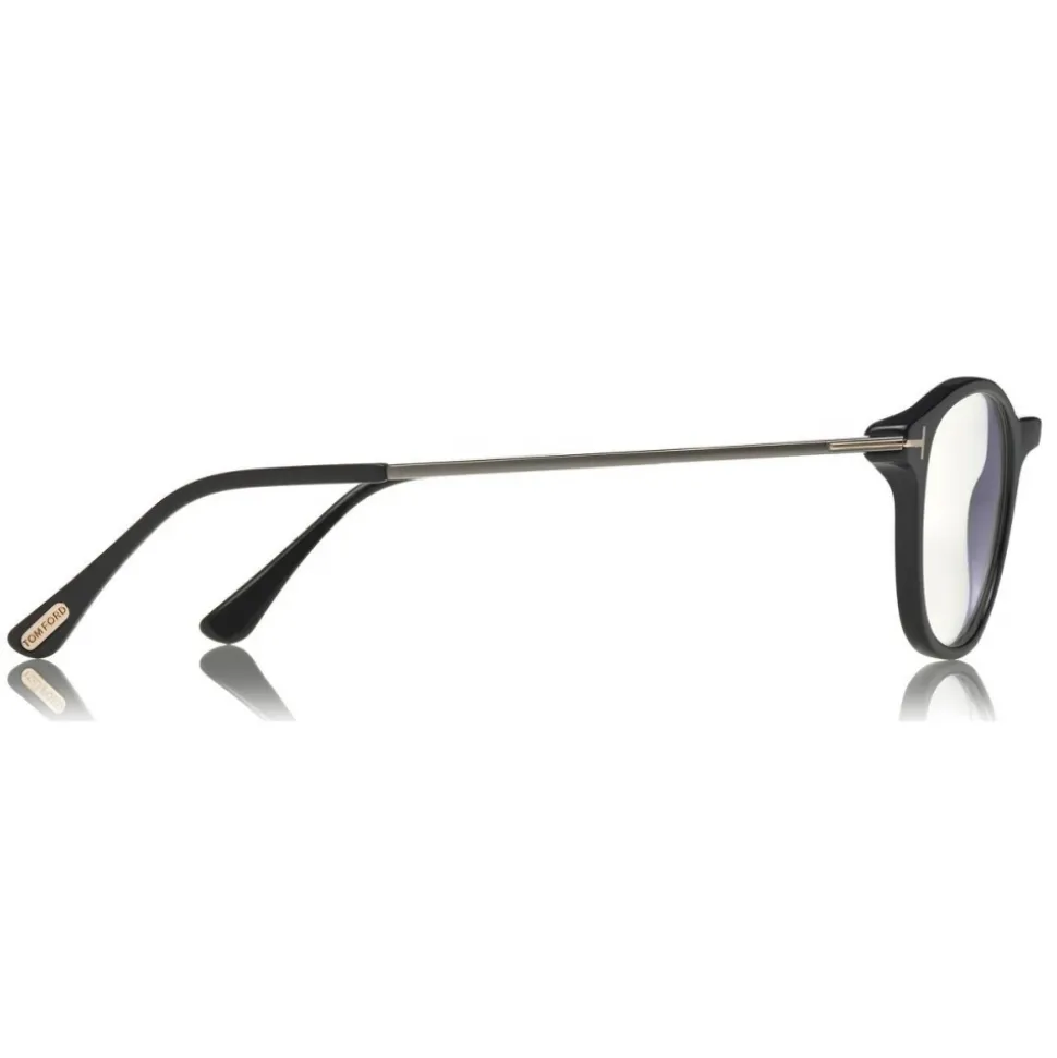 Discover the latest ready-to-wear clear lenses now available in TOM FORD Eyewear. These protective lenses reduce risks of blue lights and increase visual comfort from long exposure to digital devices. Soft rounded acetate front combined with flat metal temples. Metal T logo decoration.