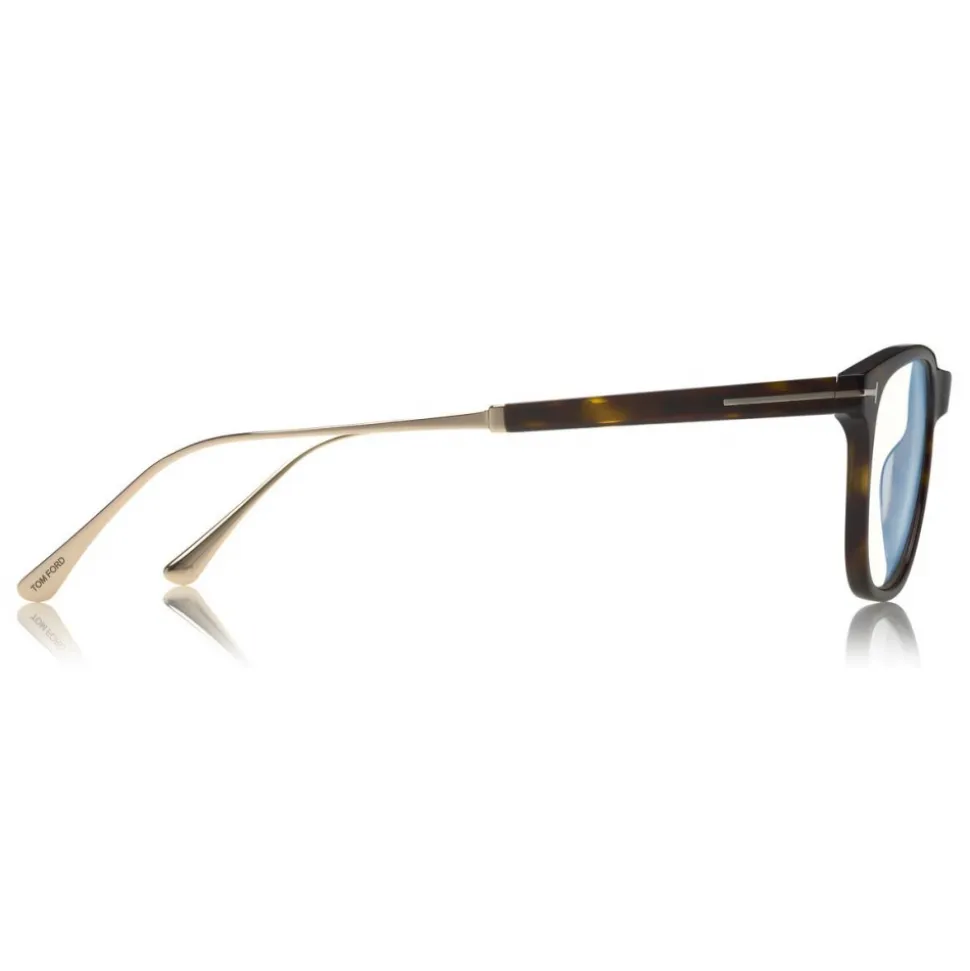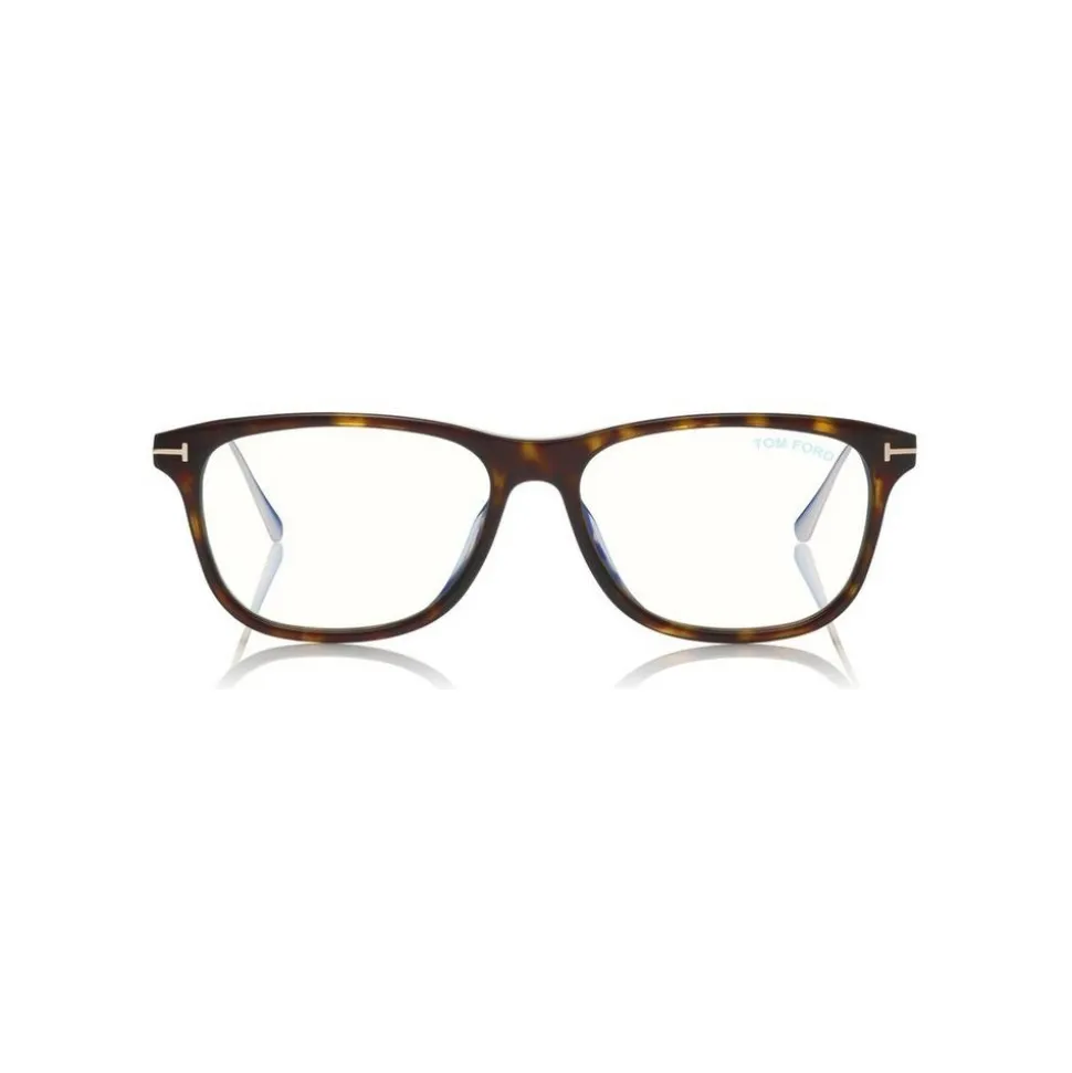 Discover the latest ready-to-wear clear lenses now available in TOM FORD Eyewear. These protective lenses reduce risks of blue lights and increase visual comfort from long exposure to digital devices. Soft squared acetate style with titanium temple tips and metal ‘T’ decoration.