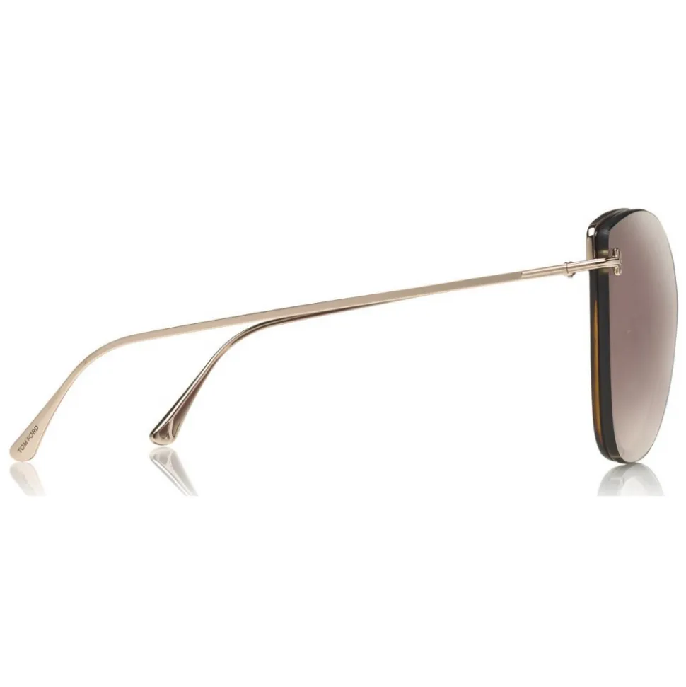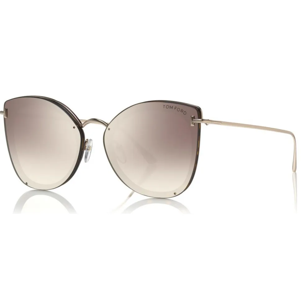 Soft butterfly style. A combination between acetate and metal, where the acetate disappears behind the lenses. The metal T logo decoration is set on the lens. Adjustable nose pads.