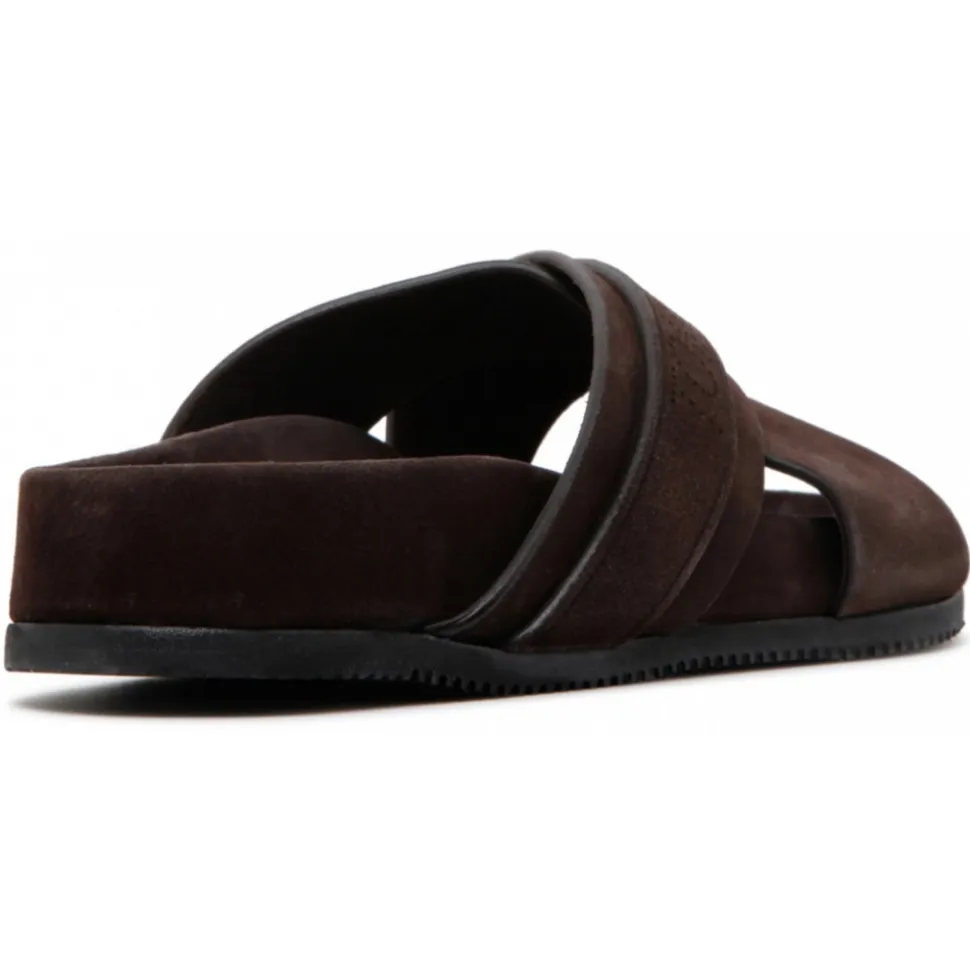 Tom Ford – Chocolate Brown Calf Suede Crossover Logo Strap Slides – Tom Ford Exclusive Luxury Collection
