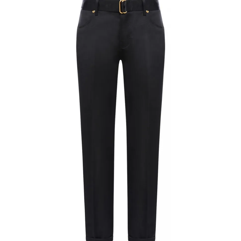 Tom Ford Pants Woman Double Silk Duchesse Boyfriend Fit Belted Black.