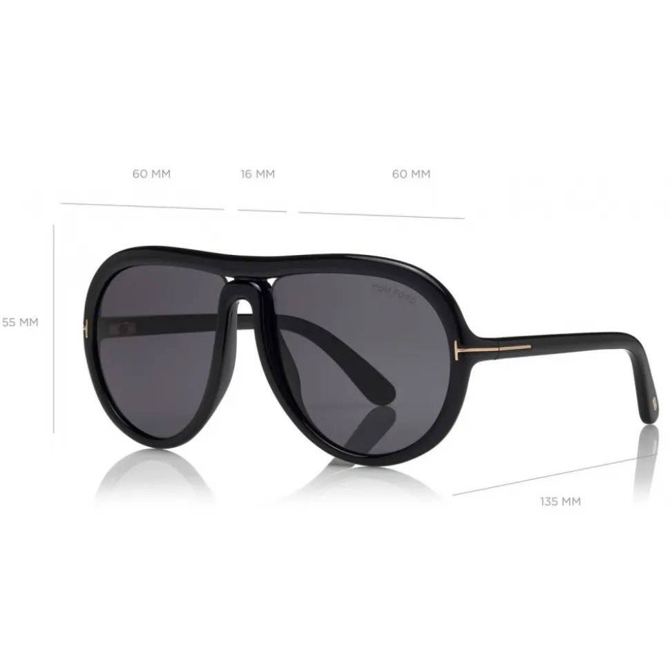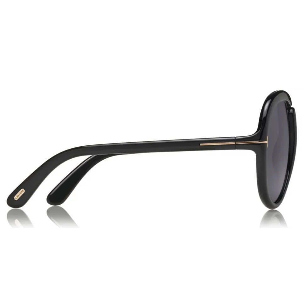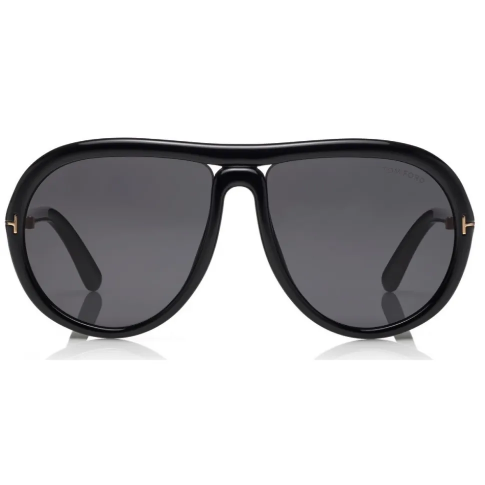 Soft rounded acetate shape with a tubolar profile and metal ‘T’ logo decoration.