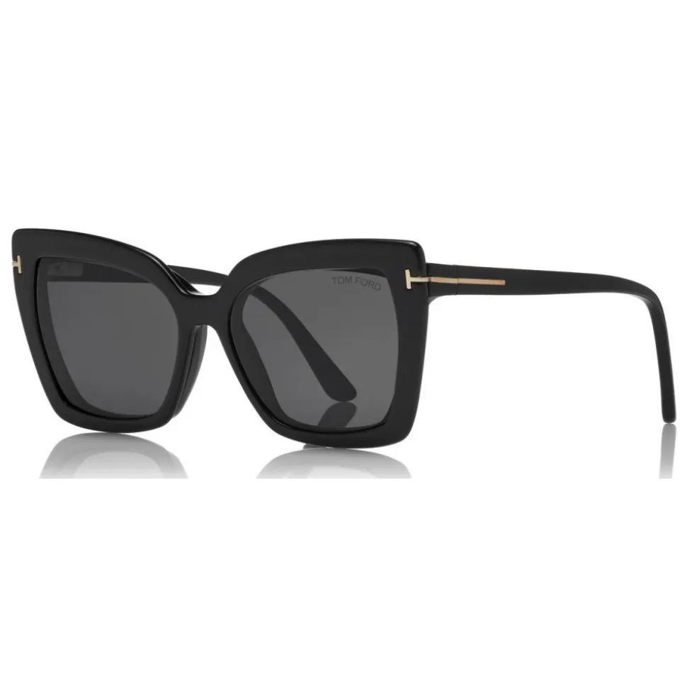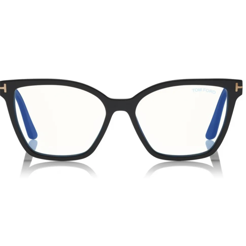 Discover the latest ready-to-wear clear lenses now available in TOM FORD Eyewear. These special lenses intended to prevent and relieve eye strain caused by long exposure to blue light from digital devices, increasing visual comfort. Soft squared acetate style with metal T temple decoration. The style comes with two injected magnetic clip-ons to change the look when wearing as sunglasses.