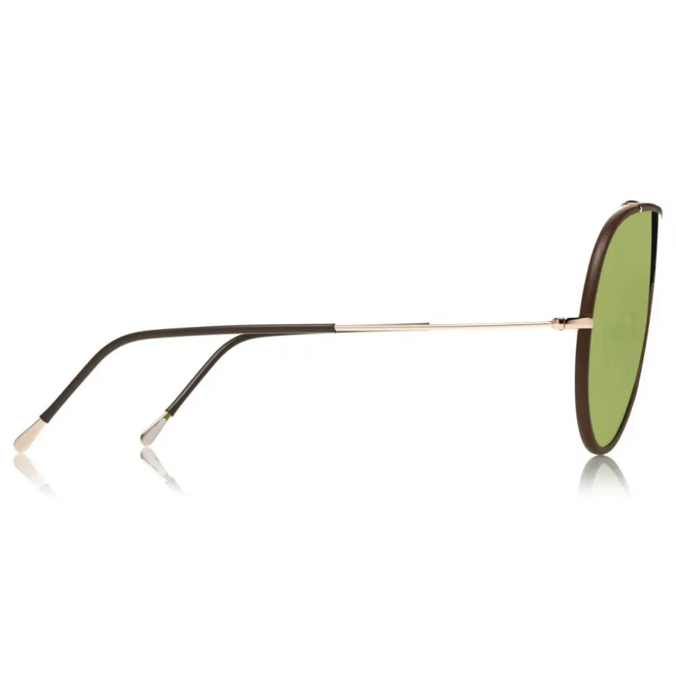 Metal shield with real leather profile on the front, recalling the infinity, and on the temple tips. Adjustable nose pads.
