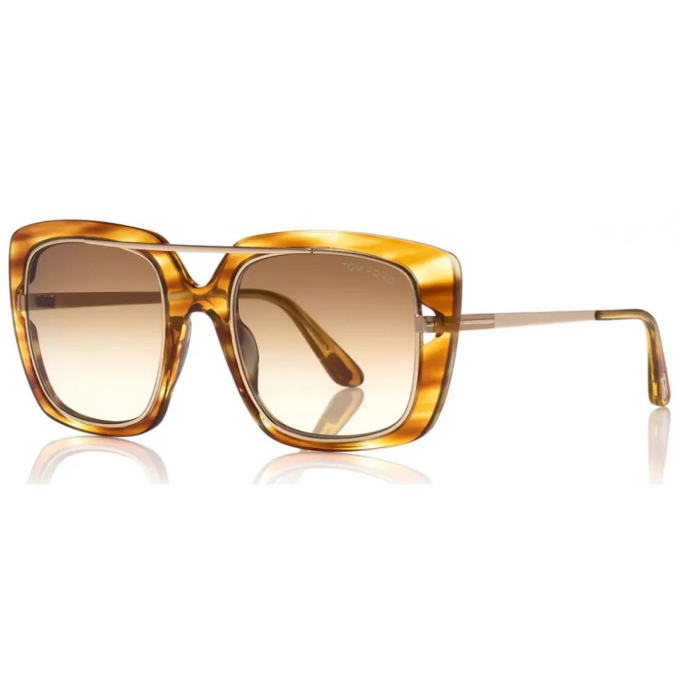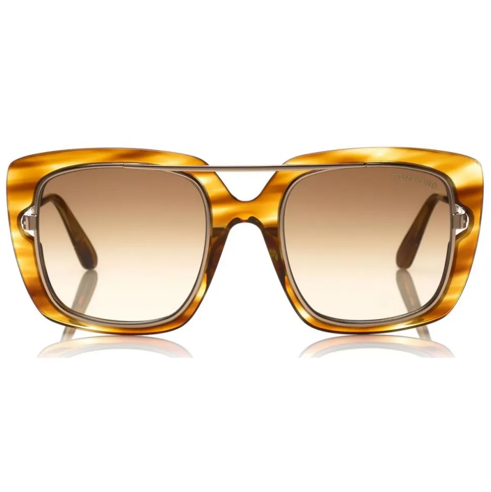 Soft squared style with acetate front, enriched by metal eye-rim and metal temple. Metal T logo decoration on the temple and metal double bridge.