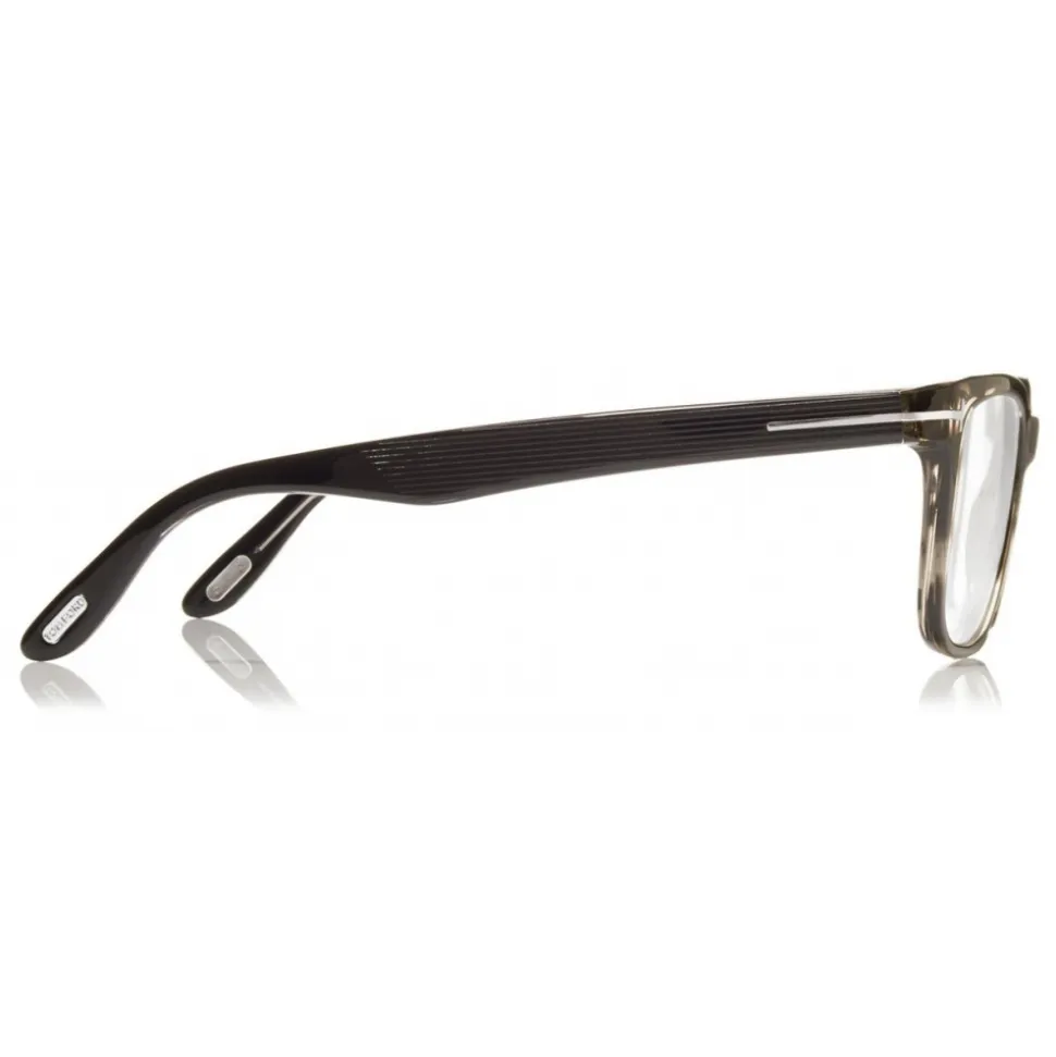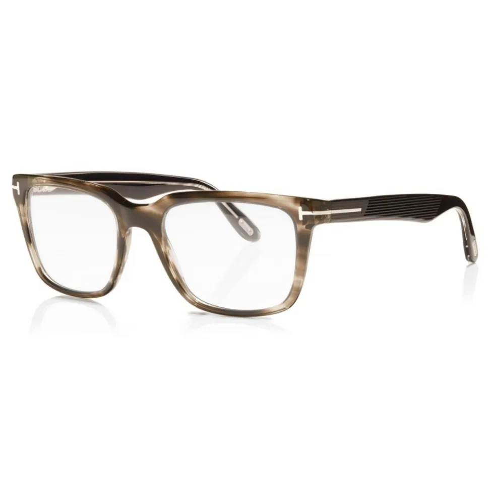 Shiny classic havana with shiny rose gold metal T logo on the temple. Stripes engraved by laser on outer surface of both temples.