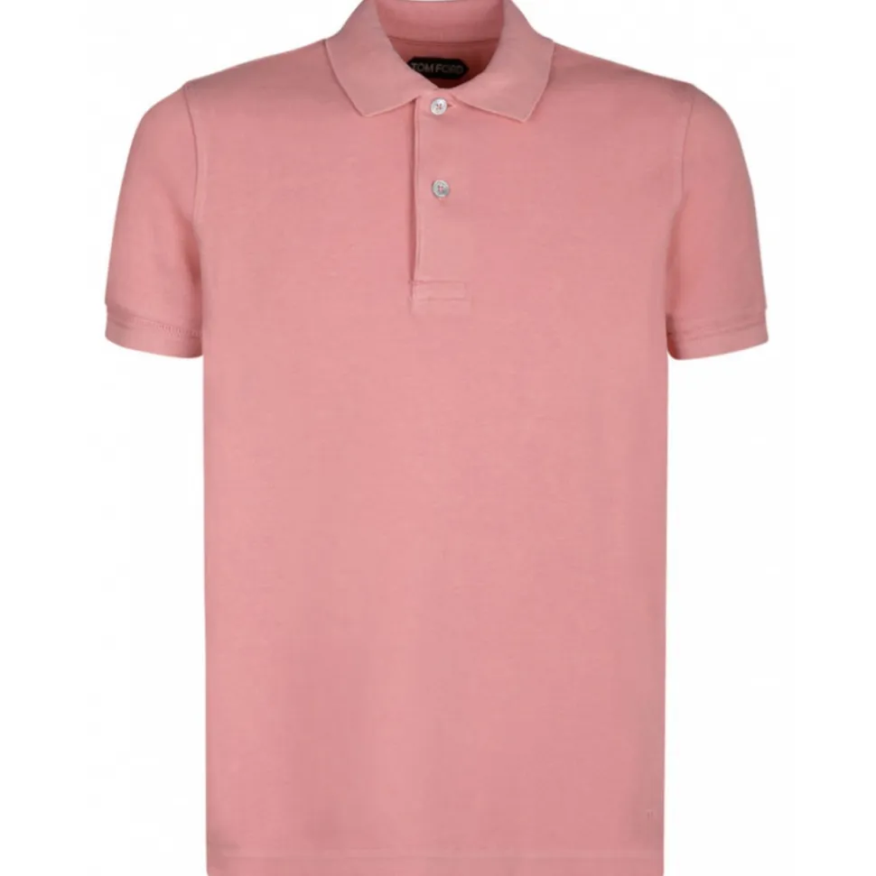 Tom Ford Pink Tennis Piquet Polo. Pink cotton short sleeves polo, classic fit, brand signature five stitch logo detail.