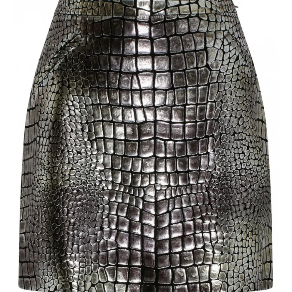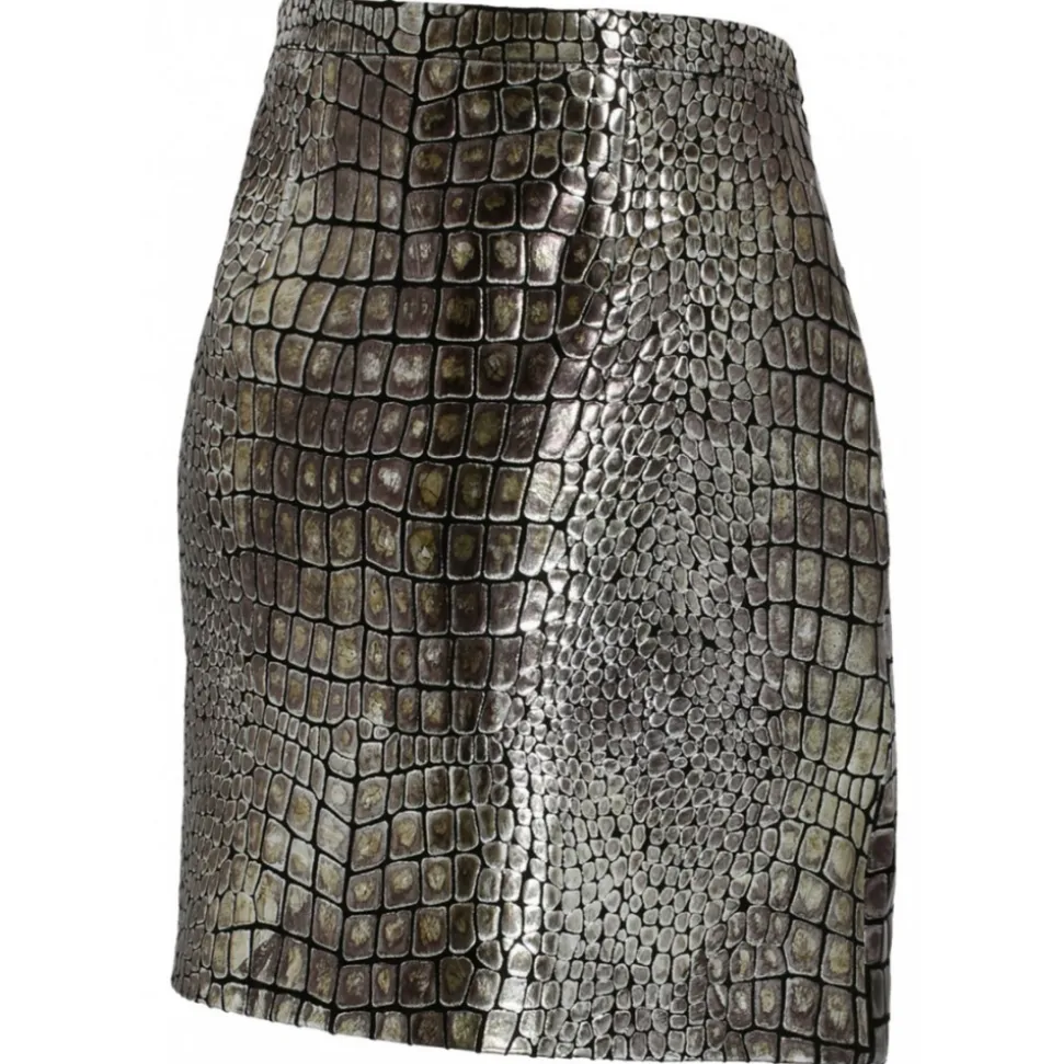 Tom Ford – Silver Tone Croc Effect Leather Mini Skirt – Tom Ford Exclusive Luxury Collection