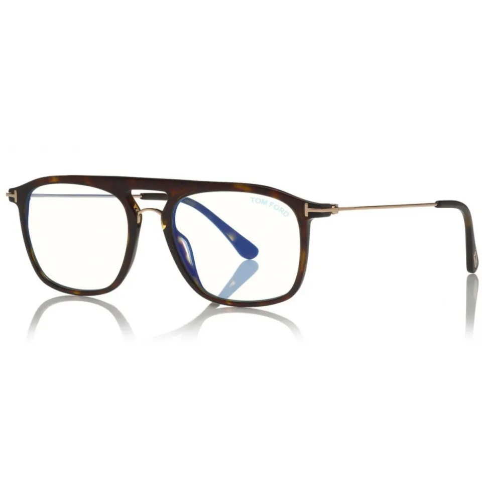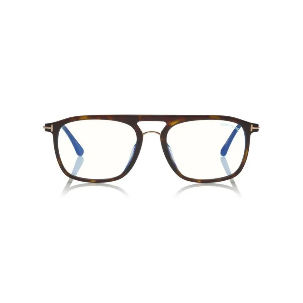 Discover the latest ready-to-wear clear lenses now available in TOM FORD Eyewear. These special lenses intended to prevent and relieve eye strain caused by long exposure to blue light from digital devices, increasing visual comfort. Soft squared acetate style with metal temples and ‘T’ logo decoration, which is also the hinge the allows the movement of temples.