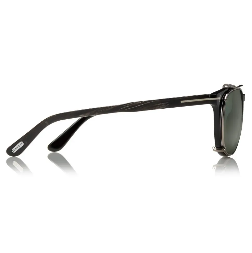 Soft squared real horn frame with signature metal ‘T’ temple decoration.
