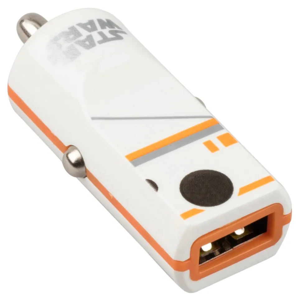 Tribe’s car chargers have a small profile but a big personality, as in this glossy-finish model inspired by BB-8, the little droid who made his debut in Episode VII of the saga and is now a fan idol!