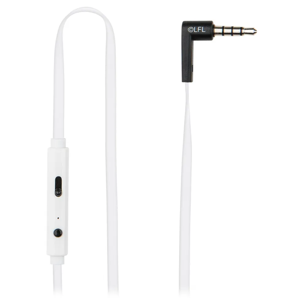 Stereo earphones to listen to music from compatible devices and making voice call through mobile devices. Equipped with in-line Microphone and volume control. Tangle-free flat cable.