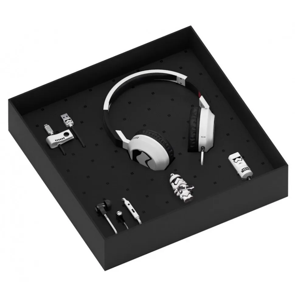 Foldable on-ear stereo headphones with built-in cable and microphone. Soft ear cushions to ensure excellent practicality. Pop is compatible with all kinds of audio devices, iOS / Android. Custom case for carrying headphones anywhere. Dimensions (mm): 179 × 145 × 73 Dimensions (in): 7.0 x 5.7 x 2.9 Cable length: 1.2 m / 3.9 ft Stereo Jack: 3.5 mm / 1/8 in Speaker diameter: ø 40.0 mm Sensitivity: 105 dB ± 3 dB Impedance: 32 Ω ± 15% Frequency response: 20 Hz – 20 KHz. In addition to Stormtrooper, discover all the graphic variants dedicated to the most beloved characters.