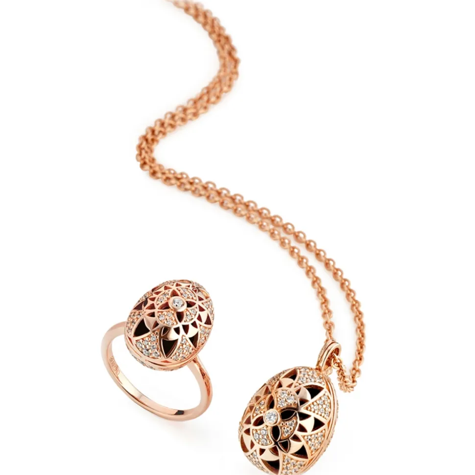 Tsars Collection – Jasmine Flower Necklace in Pink Silver and Onyx – Handmade in Swiss – Luxury Exclusive Collection