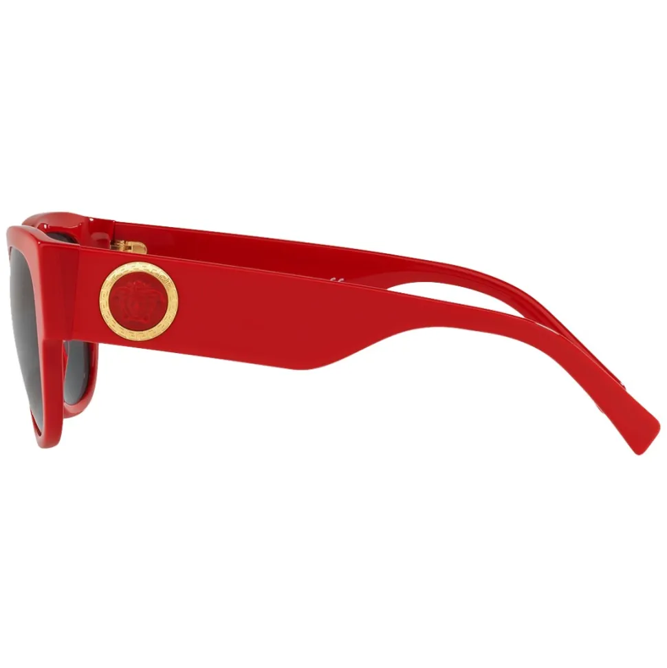 Sunglasses bold and gritty, which attract attention thanks to the combination of elegant design and bright colors. The red acetate temples are decorated with a three-dimensional Medusa-colored Medusa Head on a gilded medallion with a Greek key motif.