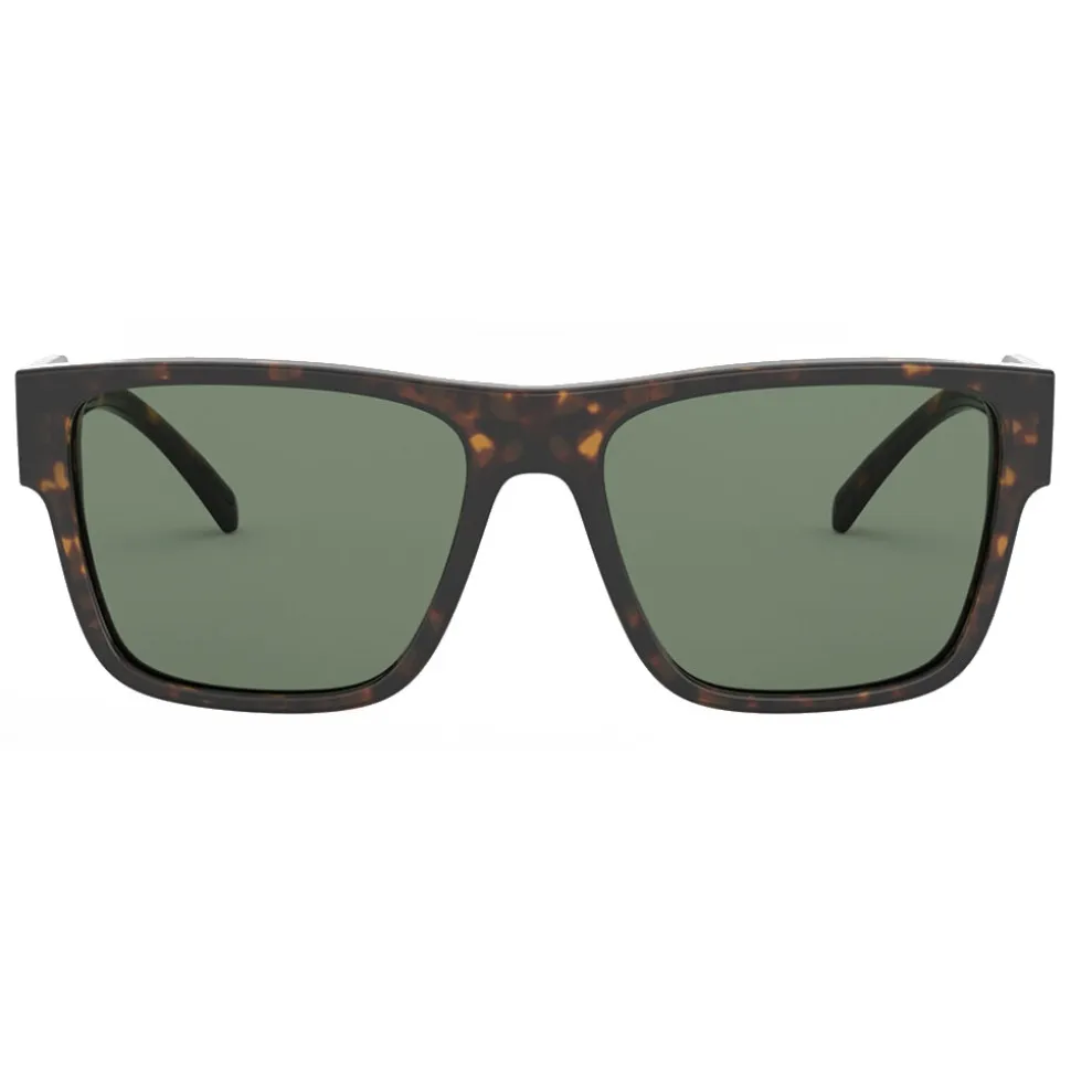 Square-shaped sunglasses featuring a Havana tone frame and green lenses. The temples are embellished with a gold-tone 90s Vintage Logo.